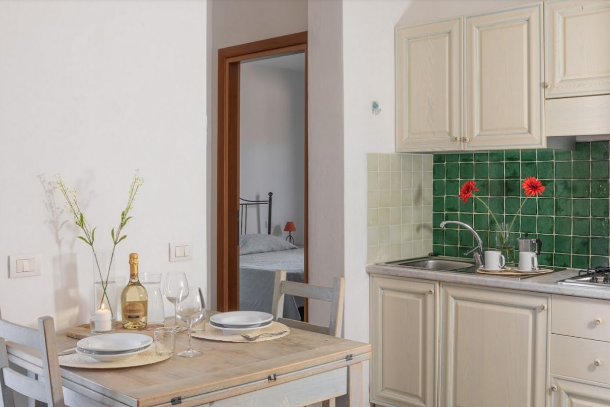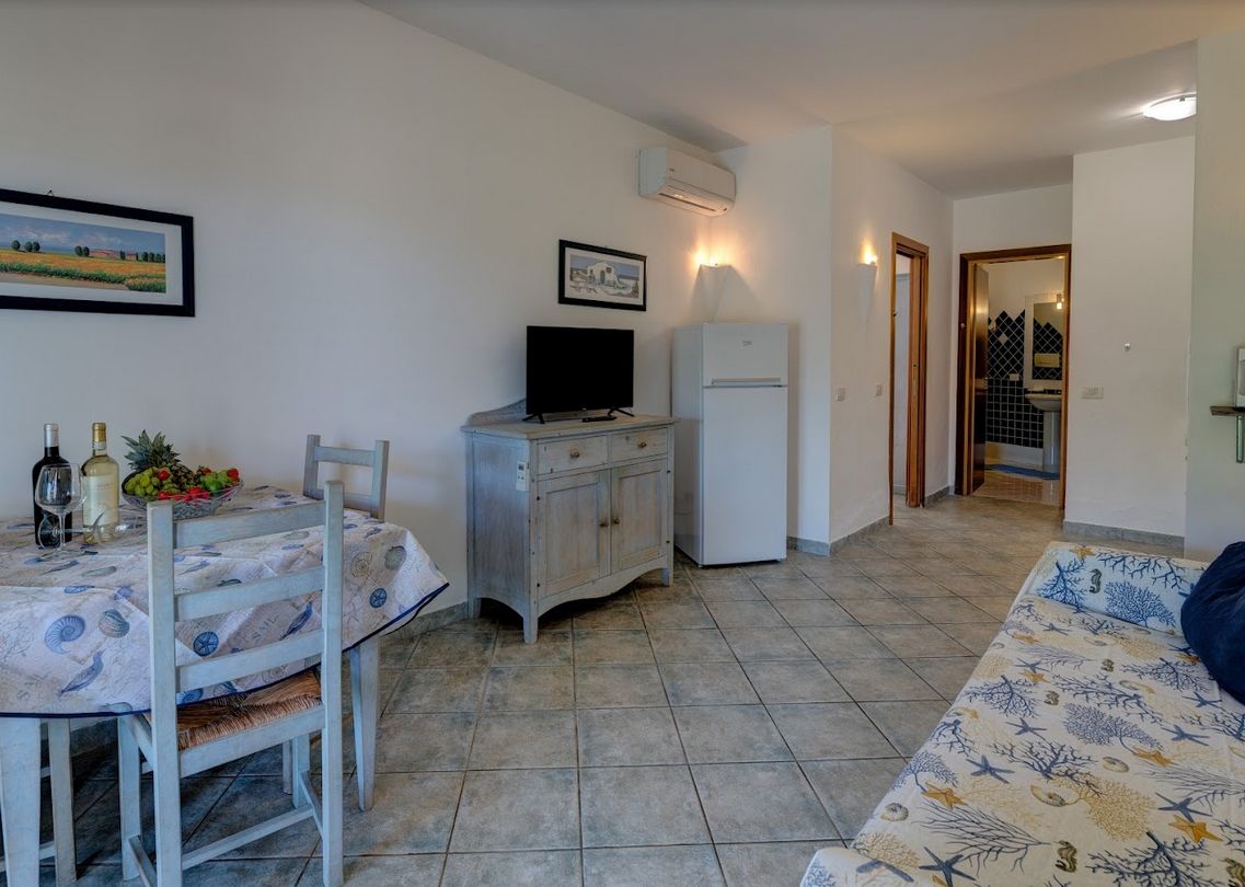 The apartments are comfortably furnished, can be at ground floor with garden or first floor veranda. All equipped with kitchenette, color TV, microwave oven, hair dryer, ironing board and iron, are available in the following categories. MONO 2 (studio for 2 people) - (30 sqm) living room with a double bed (single beds that can be separated), kitchenette, bathroom. BILO 4 (one-bedroom apartment for 4 people) - (40/50 sqm) living room with double sofa bed, kitchenette, double bedroom, bathroom.