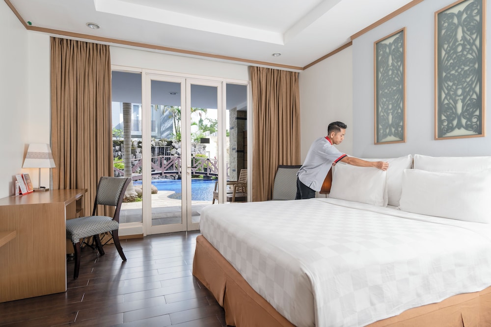 Tendrás un centro de negocios, periódicos gratuitos en el vestíbulo y tintorería a tu disposición. Las instalaciones para eventos de este hotel incluyen zona para conferencias y una sala de reuniones. Hay un aparcamiento sin asistencia gratuito disponible. Relájate en el spa completo, que ofrece masajes, tratamientos corporales y tratamientos faciales. Si quieres divertirte, aquí tienes una piscina al aire libre y gimnasio, entre muchas otras instalaciones. Encontrarás también conexión a Internet wifi gratis, servicios de conserjería y una tienda de recuerdos. Cuando quieras almorzar o cenar, solo tienes que pasarte por Swiss Cafe, un restaurante especializado en cocina indonesia. El alojamiento también cuenta con una cafetería y con un servicio de habitaciones con horario limitado. Pon la guinda en el pastel a un día fantástico con una bebida en el bar o lounge o en el bar junto a la piscina. Se ofrece un desayuno bufé todos los días de 06:30 a 10:00 con un coste adicional.- Desayuno tipo bufé: 150000 IDR por adulto y 75000 IDR por menor (precio aproximado)