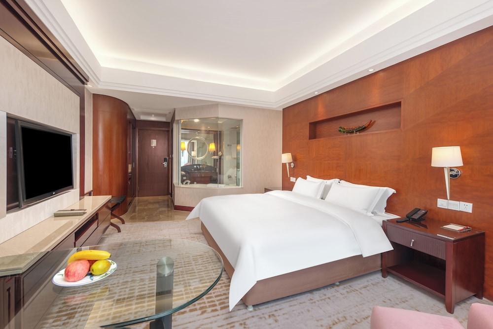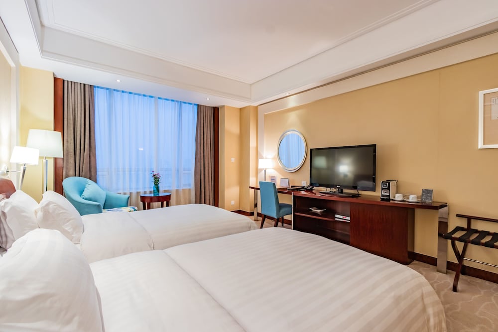 Si decides alojarte en Plaza Hotel Yuyao de Ningbo, estarás a 40,1 km de Parque Cultural Liangzhu y a 48,5 km de Ningbo Jiangbei Wanda Plaza (centro comercial). Además, este hotel spa se encuentra a 51,9 km de Parque del Lago de la luna. Te sentirás como en tu propia casa en cualquiera de las 324 habitaciones con aire acondicionado, frigorífico y minibar. Para los momentos de ocio, tendrás un televisor con canales por satélite y conexión a Internet por cable y wifi gratis. El cuarto de baño está provisto de artículos de higiene personal gratuitos y secadores de pelo. Entre las comodidades, se incluyen tabla de planchar con plancha, además de un servicio de limpieza disponible todos los días y la posibilidad de solicitar camas supletorias (de pago). Las distancias se expresan en números redondos.