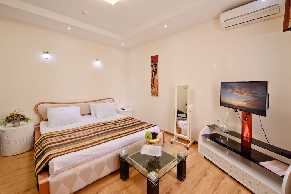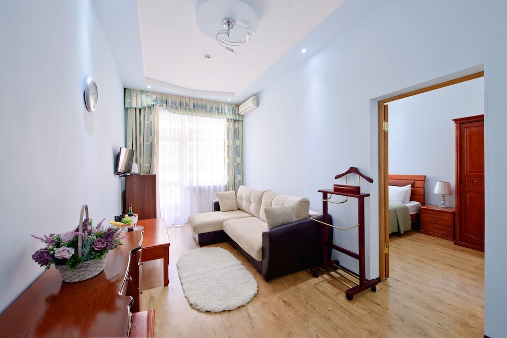 Si decides alojarte en Raduga-Prestige Hotel, te encontrarás en una fantástica zona de Sochi (Tsentralni) y apenas te separarán 15 minutos a pie de Iglesia de San Vladimiro y Playa de Albatross. Además, este hotel se encuentra a 0,9 km de Monumento a Churchill, Roosevelt y Stalin y a 1,5 km de Playa Firefly. Te sentirás como en tu propia casa en cualquiera de las 34 habitaciones con aire acondicionado, frigorífico y televisión de plasma. La conexión wifi gratis te mantendrá en contacto con los tuyos. Además, podrás disfrutar de canales digitales. El cuarto de baño está provisto de ducha, artículos de higiene personal gratuitos y secadores de pelo. Entre las comodidades, se incluyen caja fuerte y escritorio, además de un servicio de limpieza disponible todos los días. Las distancias se expresan en números redondos.