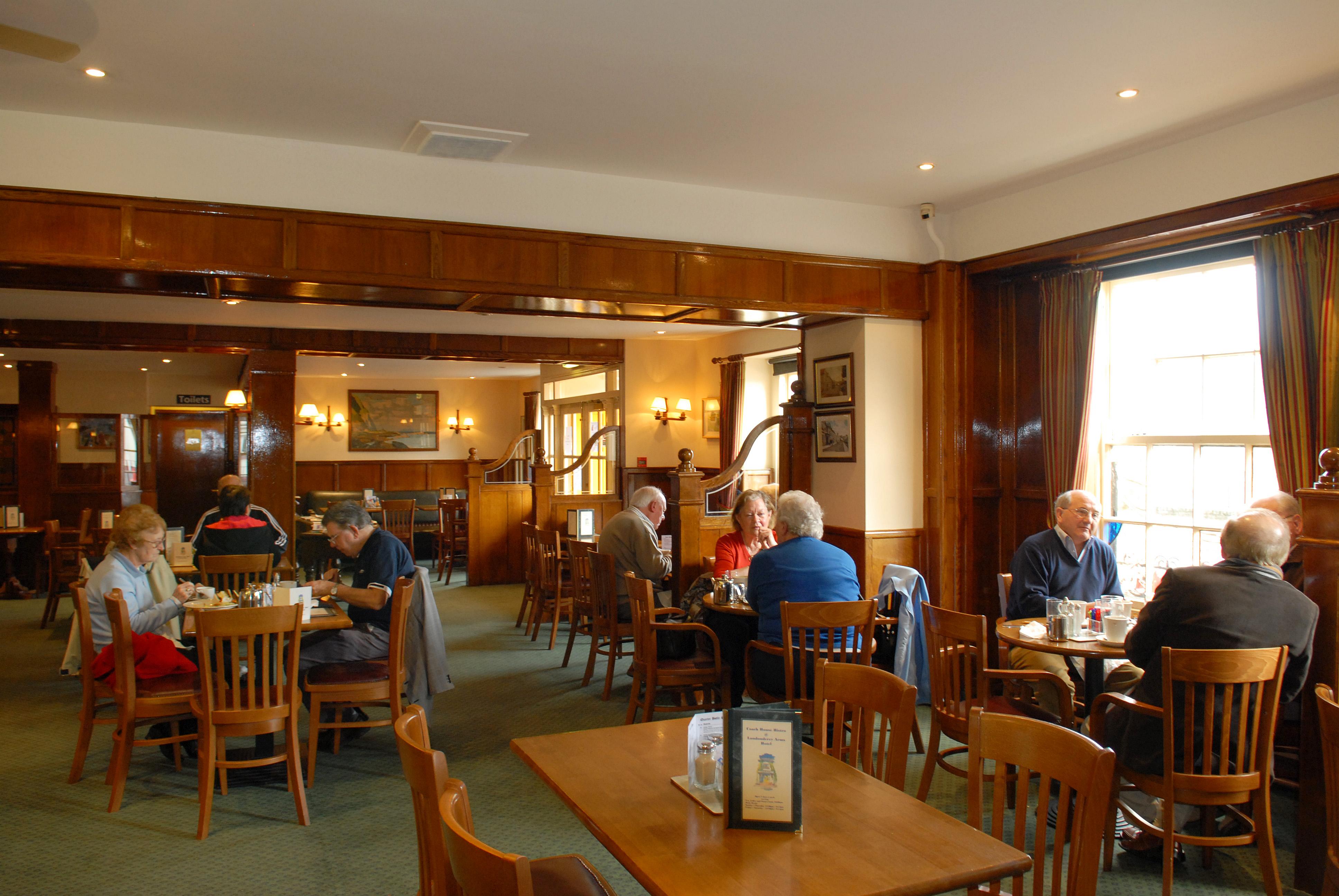El Londonderry Arms Hotel, ubicado en los pintorescos Glens of Antrim, ofrece una escapada histórica en el pueblo costero de Carnlough. Este hotel familiar cuenta con 35 habitaciones con baño privado, decoradas con buen gusto, cada una equipada con radio, televisión, teléfono, secador de pelo y set de té. Muebles antiguos y piezas de roble tallado adornan las zonas comunes del hotel, complementados con pinturas de artistas del Ulster. Muchas habitaciones ofrecen el acogedor ambiente de una chimenea de leña. Los huéspedes pueden disfrutar de una excelente gastronomía en el Frances Anne and Tapestry Room, que ofrece cocina local, o bien optar por una experiencia más informal en el Coach House. El ambiente cálido y personal del hotel proporciona un refugio relajante para escapar de la vida cotidiana.