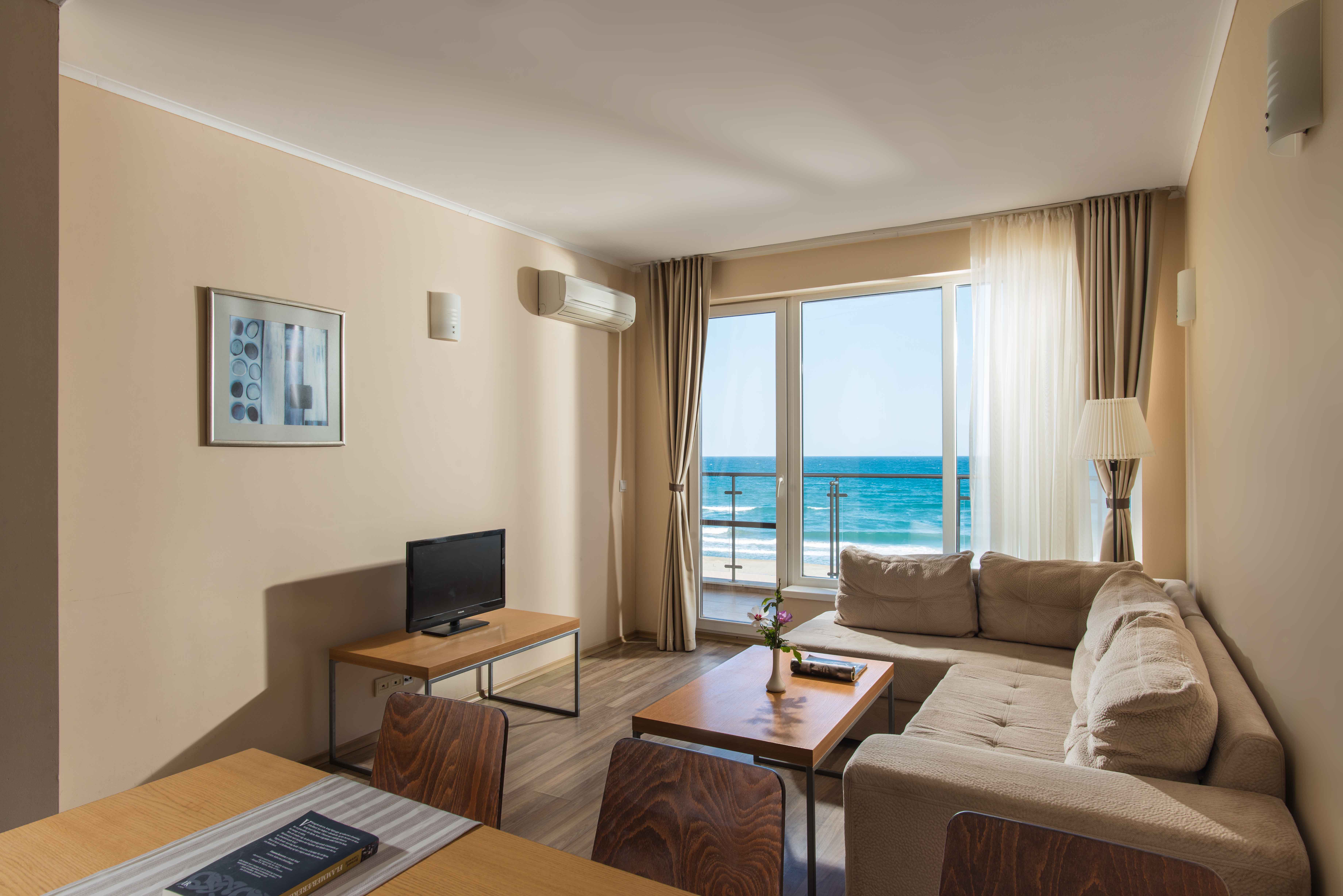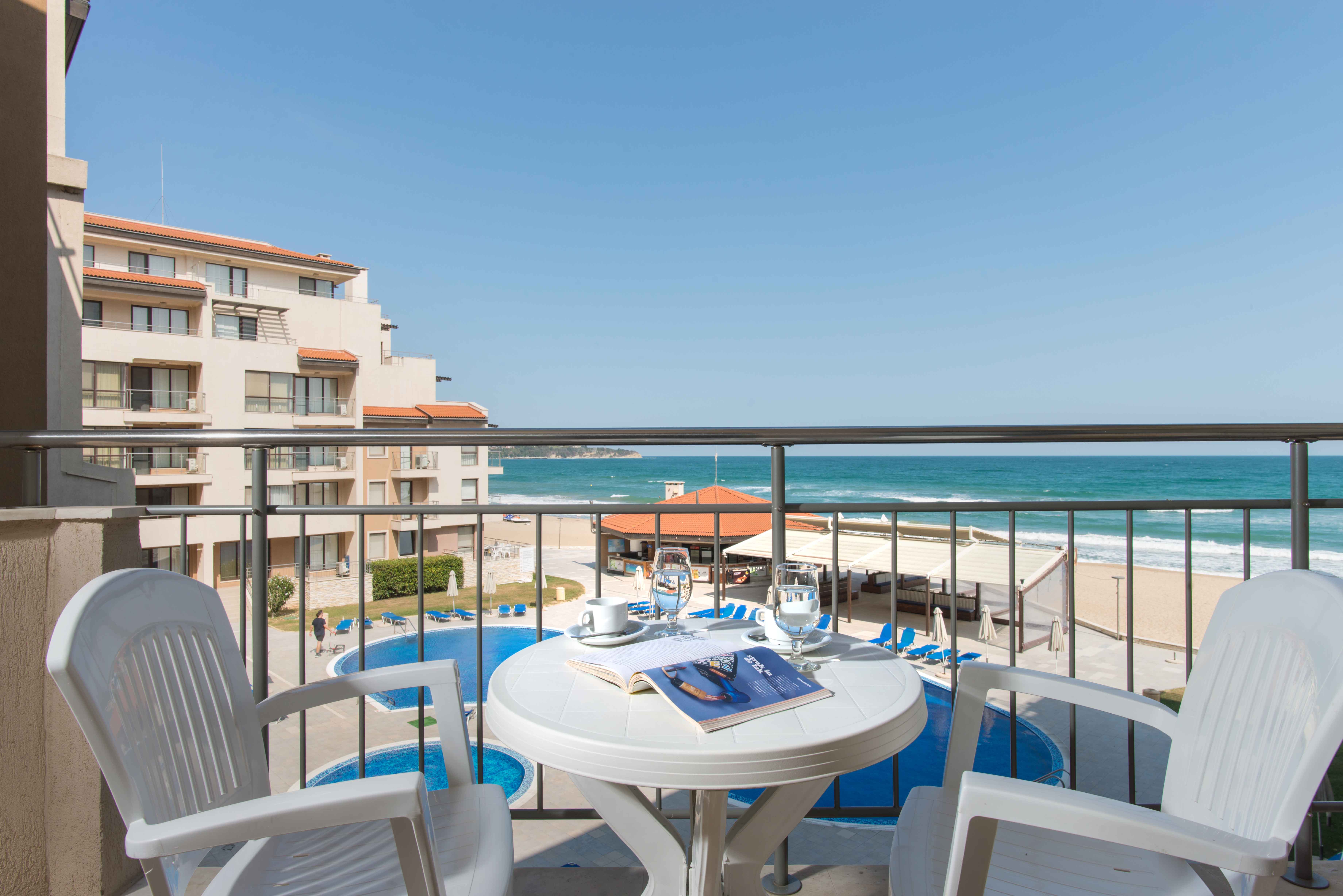 Obzor es un pequeño pueblo costero situado a orillas del Mar Negro, rodeado de viñedos, bosques y campos. Tiene una población de unos 2000 habitantes y se encuentra a unos 35 km del complejo Sunny Beach. Está a una hora en coche de los 2 aeropuertos internacionales situados junto a las principales ciudades costeras búlgaras de Varna y Bourgas. Construido en 2007, este complejo atrae a los visitantes por su funcionalidad, comodidad y estilo, combinados con elegantes opciones de entretenimiento. Por lo tanto, es ideal para quienes buscan relajación y puro placer. Hay 523 apartamentos disponibles en este hotel de apartamentos con aire acondicionado. Las instalaciones incluyen un vestíbulo con recepción 24 horas, ascensor, un minimercado, una peluquería, un bar en la piscina, una sala de juegos, 2 restaurantes, un bar de aperitivos, una sala de conferencias para 60 personas, acceso inalámbrico a Internet, aparcamiento, garaje, una guardería y 2 parques infantiles al aire libre. Por un cargo adicional, los huéspedes pueden disfrutar de servicios de habitaciones y lavandería, y alquilar bicicletas en el hotel. Cada uno de los apartamentos ofrece una cómoda sala de estar con cocina americana y uno, dos o tres dormitorios. El interior es una combinación perfecta de lujo elegante y máxima funcionalidad. Los baños incluyen duchas y secador de pelo. También hay teléfono de línea directa, televisión por satélite, acceso a Internet, plancha y tabla de planchar, caja fuerte y balcón/terraza. La cocina americana incluye nevera, horno, microondas y menaje para preparar té y café. Los apartamentos disponen de calefacción y aire acondicionado regulables individualmente.