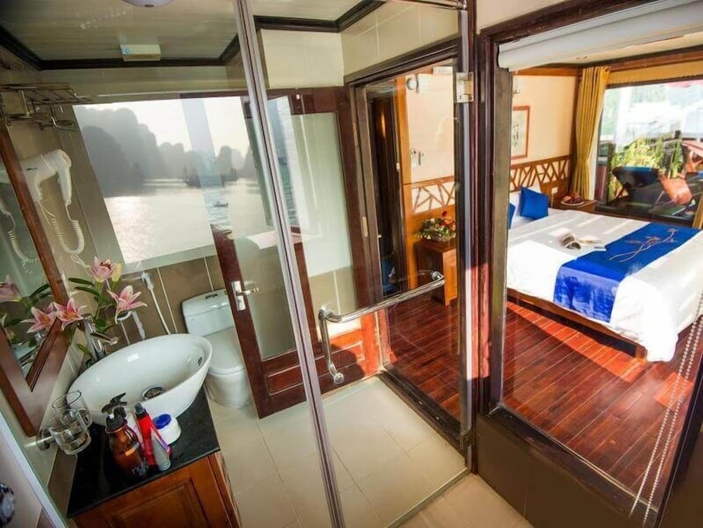 Halong Royal Palace Cruise de Ha Long está cerca del mar, a solo 2 min en coche de Playa Tuan Chau y a 11 min de Mercado nocturno de Ha Long. Además, este barco de crucero de playa se encuentra a 13,2 km de Terminal Oceánico del Teleférico Queen y a 13,5 km de Parque del Dragón. Te sentirás como en tu propia casa en cualquiera de las 14 habitaciones con aire acondicionado y minibar. Mantén el contacto con los tuyos gracias a la la conexión wifi gratis. El baño privado con ducha está provisto de artículos de higiene personal gratuitos y secadores de pelo. Entre las comodidades, se incluyen caja fuerte y escritorio, además de un servicio de limpieza disponible todos los días. Las distancias se expresan en números redondos.