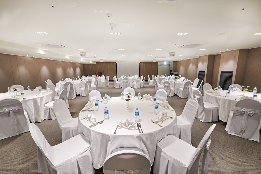 Si decides alojarte en Royal Emporium Incheon Airport Hotel de Inch'on, estarás a 10,9 km de Centro de conducción de BMW y a 26,9 km de NC Cube Canal Walk. Además, este hotel de playa se encuentra a 28,8 km de Parque central de Songdo y a 28,9 km de Hyundai Premium Outlet Songdo. Te sentirás como en tu propia casa en cualquiera de las 406 habitaciones con frigorífico y televisión LED. La conexión wifi gratis te mantendrá en contacto con los tuyos. Además, podrás disfrutar de canales por cable. El baño privado con ducha está provisto de secadores de pelo y albornoces. Entre las comodidades, se incluyen caja fuerte, escritorio y teléfono. Las distancias se expresan en números redondos.