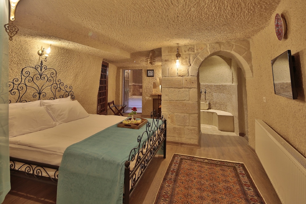 Si decides alojarte en Jacob's Cave Suites de Avanos, estarás en el casco histórico y a apenas diez minutos a pie de Castillo Cavusin y Iglesia de Cavusin. Además, este hotel se encuentra a 0,7 km de Valle de Paşabağ y a 4,5 km de Museo al aire libre Zelve. Disfruta de una estancia fabulosa en una de las 12 habitaciones con decoraciones diferentes, todas equipadas con suelo radiante y televisión LED. Las camas cuentan con colchones viscoelásticos y ropa de cama de alta calidad para descansar plácidamente. La conexión wifi gratis te mantendrá en contacto con los tuyos. Además, podrás disfrutar de canales por satélite. Entre las comodidades, se incluyen caja fuerte, escritorio y teléfono. Las distancias se expresan en números redondos.