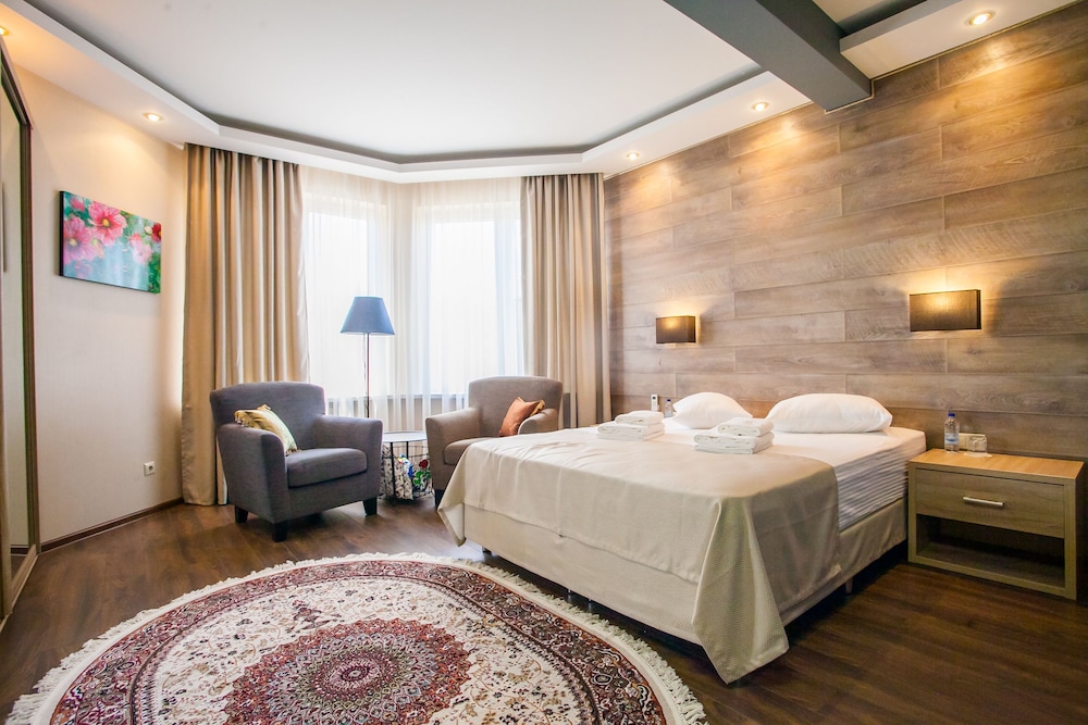Si decides alojarte en Zhemchug Village Hotel de Sirius, estarás cerca de la playa y a menos de cinco minutos ne coche de Parque de atracciones Sochi Park y Parque Olímpico de Adler. Además, este hotel se encuentra a 2,1 km de Parque Olímpico de Sochi y a 2,2 km de Playa Olímpica. Te sentirás como en tu propia casa en cualquiera de las 11 habitaciones con aire acondicionado, frigorífico y televisión de pantalla plana. La conexión wifi gratis te mantendrá en contacto con los tuyos. Además, podrás disfrutar de canales por satélite. El baño privado con ducha está provisto de artículos de higiene personal gratuitos y secadores de pelo. Entre las comodidades, se incluyen caja fuerte y escritorio, además de un servicio de limpieza disponible todos los días. Las distancias se expresan en números redondos.