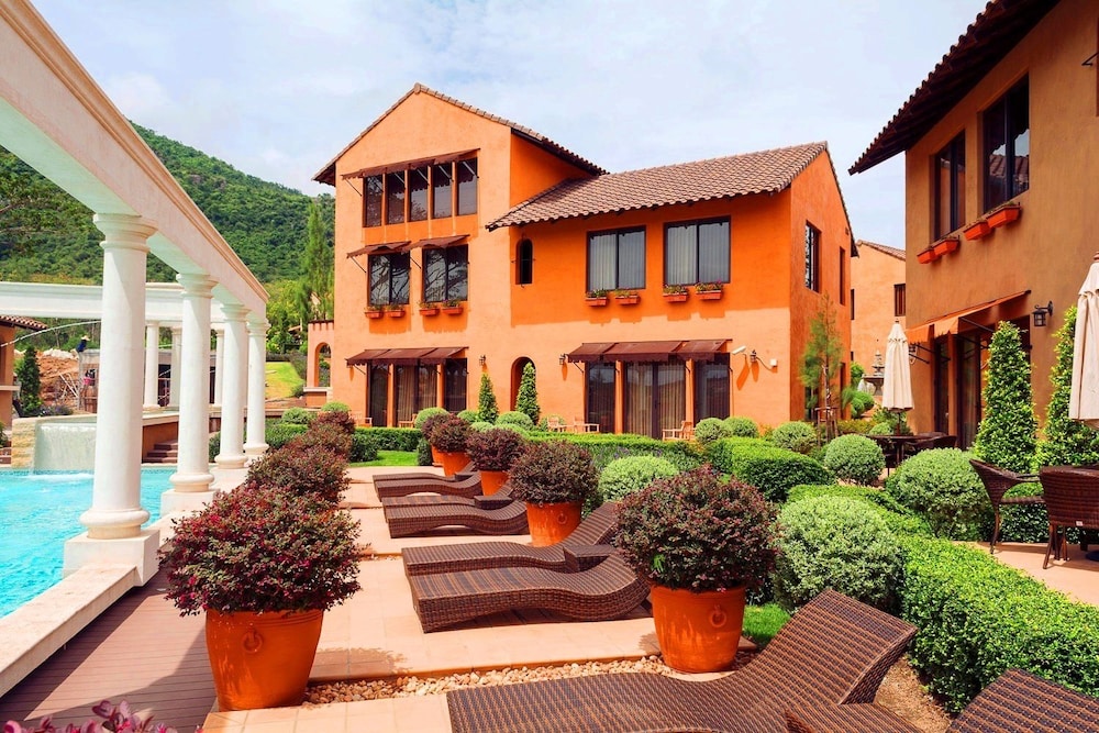 Si decides alojarte en Hotel La Casetta by Toscana Valley de Pak Chong, estarás en un parque nacional y a menos de diez minutos en coche de Parque nacional de Khao Yai y Complejo Forestal Dong Phayayen-Khao Yai. Además, este complejo con campo de golf se encuentra a 12,4 km de Museo de arte Khao Yai y a 13,4 km de Nam Phut Natural Spring (parque nacional). Te sentirás como en tu propia casa en cualquiera de las 48 habitaciones con aire acondicionado, frigorífico y minibar (con algunos artículos gratuitos). La conexión wifi gratis te permitirá mantenerte al día de todo. Además, en tus ratos libres tendrás una televisión de pantalla plana con canales por cable para entretenerte. El baño privado con bañera y ducha independientes está provisto de bañera profunda y cabezal de ducha tipo lluvia. Entre las comodidades, se incluyen caja fuerte (cabe un portátil) y hervidor eléctrico, además de un servicio de limpieza disponible todos los días. Las distancias se expresan en números redondos.