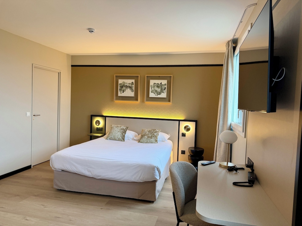 Tendrás un servicio de recepción las 24 horas, consigna de equipaje y un ascensor a tu disposición. ¿Estás organizando un evento en Saint-Onen-la-Chapelle? En este hotel tienes a tu disposición 100 metros cuadrados de espacio con zona para conferencias y una sala de reuniones. Hay un aparcamiento sin asistencia gratuito disponible. Con una terraza y jardín donde descansar y comodidades como conexión a Internet wifi gratis, ¡no te faltará de nada! Encontrarás además una televisión en la zona común, un salón de eventos y espacio para bicicletas. L Adresse, un restaurante especializado en cocina francesa, te lo pone fácil para almorzar o cenar, aunque también puedes aprovechar el servicio de habitaciones con horario limitado. Apaga la sed con tu bebida favorita en el bar o lounge. Se ofrece un desayuno bufé todos los días de 06:30 a 09:30 con un coste adicional. La clasificación oficial por estrellas de este alojamiento ha sido otorgada por ATOUT France, la agencia de desarrollo turístico de Francia.
