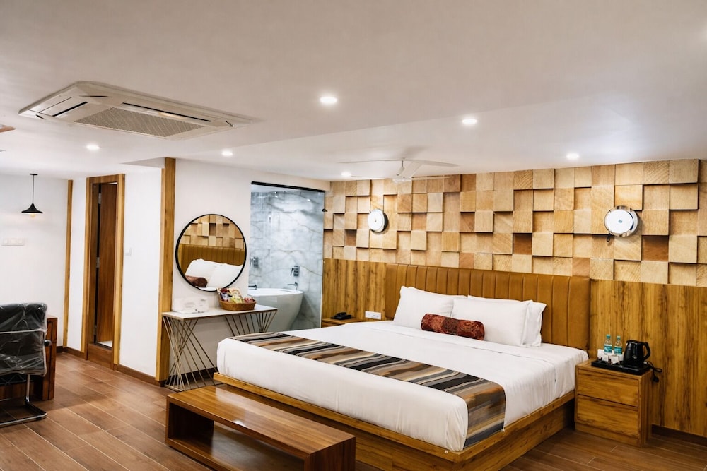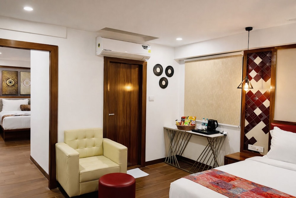 Si decides alojarte en HOTEL SIGNATURE BANJARA HILLS HYDERABAD, disfrutarás de una fantástica ubicación en el centro de Hyderabad y apenas te separarán diez minutos en coche de Mezquita Charminar y CARE Hospitals - Banjara Hills. Además, este hotel se encuentra a 16 km de U.S. Consulate General y a 1,8 km de Jagannath Temple. Disfruta de una estancia fabulosa en una de las 90 habitaciones, todas equipadas con chimenea y suelo radiante. Las camas cuentan con colchones Select Comfort y sábanas de algodón egipcio para descansar plácidamente. La conexión wifi gratis te permitirá estar al tanto de todo. Para tus momentos de ocio, tendrás una Smart TV de 50 pulgadas con canales digitales. Entre las comodidades, se incluyen escritorio, una zona de estar separada y teléfono con y llamadas internacionales gratuitas. Las distancias se expresan en números redondos.