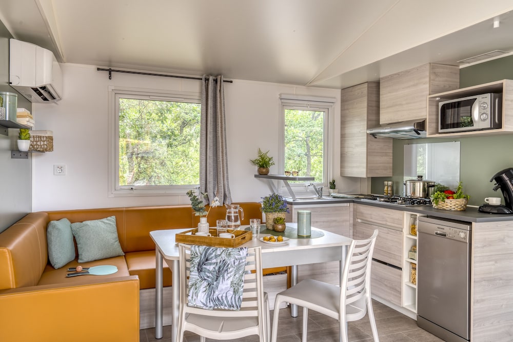 Camping Le Bois Fleuri de Argelès-sur-Mer está a orillas del río, a solo 15 minutos en coche de Parque Luna y Aqualand St Cyprien. Además, este camping para familias se encuentra a 9,2 km de Playa de Racou y a 11,6 km de Saint-Cyprien-Plage. Reserva una de las 475 habitaciones climatizadas, todas equipadas con cocina con frigorífico/congelador grande y horno. La conexión wifi gratis te permitirá mantenerte al día de todo. Además, en tus ratos libres tendrás una televisión de pantalla plana con canales por satélite para entretenerte. Entre las comodidades, se incluyen microondas y servicio de guardería en la habitación (de pago), además de un servicio de limpieza disponible a petición. Las distancias se expresan en números redondos.