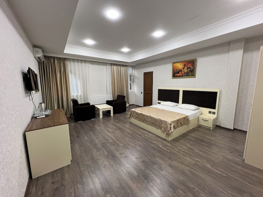 Tendrás conexión a Internet por cable gratis, tintorería y un servicio de recepción las 24 horas a tu disposición. Pagando un pequeño suplemento podrás aprovechar prestaciones como servicio de transporte al aeropuerto (ida y vuelta) disponible 24 horas y aparcamiento sin asistencia gratuito. Aprovecha los prácticos servicios que se te ofrecen, como conexión a Internet wifi gratis, servicios de conserjería o una tienda de recuerdos. Encontrarás también una peluquería, un vestíbulo con chimenea y un salón de fiestas. Prueba deliciosos platos sin moverte de este hotel, que cuenta con un restaurante y ofrece servicio de habitaciones. Qué mejor forma de acabar el día que con una bebida en el bar o lounge. Se ofrece un desayuno continental todos los días de 09:00 a 12:30 con un coste adicional. Hotelstars Union otorga una clasificación oficial a los alojamientos de Azerbaiyán. Este alojamiento está clasificado con 1 estrella.Los siguientes cargos se pagan en el alojamiento (es posible que las tasas incluyan los impuestos aplicables):