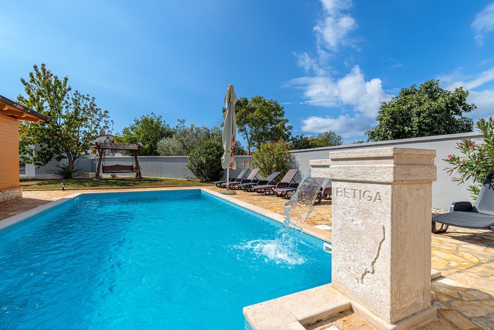 Esta casa de vacaciones de Vodnjan está a menos de 15 minutos en coche de Datule Barbariga y Castillo Soardo-Bembo. Además, esta casa de vacaciones se encuentra a 5,7 km de Paleo Parque y a 11,8 km de Iglesia de San Julián. Regálate una estancia fantástica en esta casa de vacaciones donde, además de aire acondicionado, tendrás una chimenea y una piscina privada. Y, si te apetece tomar el aire, puedes salir a su balcón, que es de uso privado. Por su parte, la cocina cuenta con frigorífico, horno y con placa de cocina. Tendrás una televisión de pantalla plana de 21 pulgadas con multitud de canales por satélite. Además, la conexión wifi gratis te permitirá mantenerte al día de todo. Las distancias se expresan en números redondos.