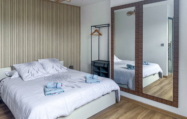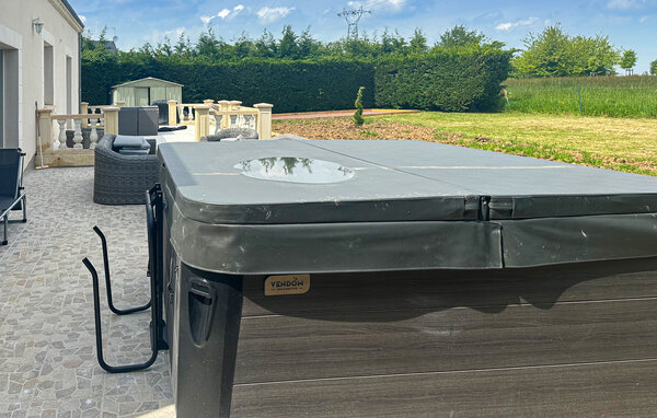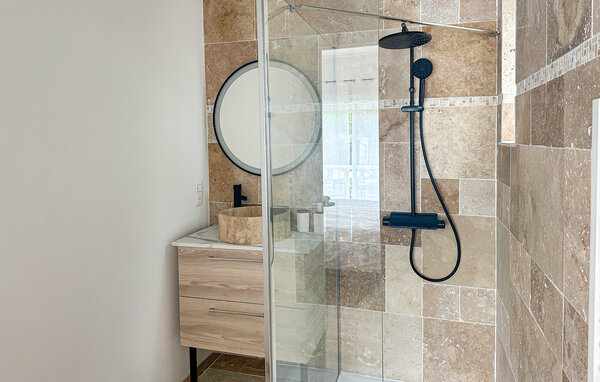 Experience a comfortable holiday in this elegant villa, which offers you plenty of space, privacy and modern facilities. The property is ideal for a holiday with a larger group. The spacious living area impresses with its bright tiled look and stylish ambience. Make yourself comfortable on one of the soft upholstered sofas or gather around the long, elegant dining table, which offers space for many guests. The separate kitchen invites you to cook with its contemporary design. Large windows provide light and harmoniously connect the interior with the garden.