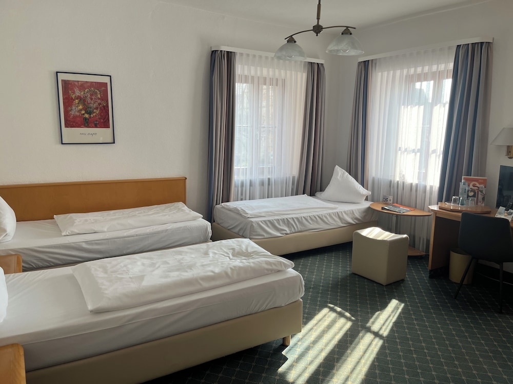 Tendrás periódicos gratuitos en el vestíbulo, tintorería y atención multilingüe a tu disposición. Hay un aparcamiento sin asistencia (de pago) disponible. Con una terraza y jardín donde descansar y comodidades como conexión a Internet wifi gratis, ¡no te faltará de nada! Encontrarás además tiendas en el alojamiento, servicio de celebración de bodas y asistencia turística (adquisición de entradas). Prueba deliciosos platos sin moverte de este hotel, que cuenta con un restaurante y ofrece servicio de habitaciones con horario limitado. Apaga la sed con tu bebida favorita en el bar o lounge. Se ofrece un desayuno bufé todos los días de 07:00 a 10:00 con un coste adicional. Hotelstars Union otorga una clasificación oficial a los alojamientos de Alemania. Este alojamiento está clasificado con 3 star Superior, y en esta página figura con el siguiente número de estrellas: 3,5.- Desayuno tipo bufé: 15 EUR por adulto y 15 EUR por menor (precio aproximado)