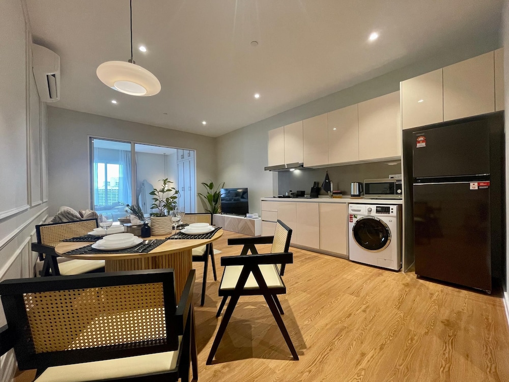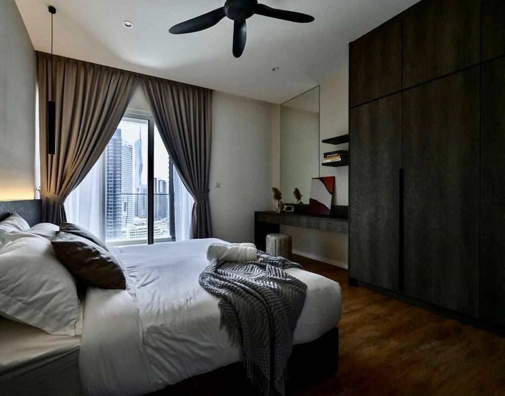 Si decides alojarte en este apartamento, disfrutarás de una céntrica ubicación en Kuala Lumpur, a solo cinco minutos en coche de Torres Petronas y Centro Comercial Suria KLCC. Además, este apartamento se encuentra a 2,3 km de Torre de Kuala Lumpur y a 2,6 km de Parque KLCC. Regálate una estancia fantástica en este apartamento cuya decoración es de lo más original y donde tendrás una cocina básica, perfectamente equipada con frigorífico grande y placa de cocina. Tendrás una Smart TV de 55 pulgadas con multitud de canales digitales. Además, la conexión wifi gratis te permitirá mantenerte al día de todo. Tendrás un escritorio y un microondas. El servicio de limpieza se ofrece a petición. Las distancias se expresan en números redondos.