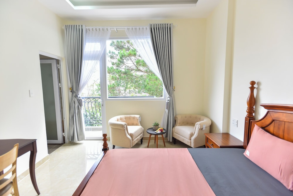 Si decides alojarte en The Grandview Villa Dalat de Da Lat, estarás a menos de diez minutos en coche de Mercado de Da Lat y Museo Lam Dong. Además, este hotel se encuentra a 3,6 km de Pagoda Linh Phuoc y a 3,8 km de Pagoda Thien Vuong. Disfruta de una agradable estancia en una de las 20 habitaciones con televisión LED. Las habitaciones disponen de balcón. La conexión wifi gratis te mantendrá en contacto con los tuyos. Además, podrás disfrutar de canales digitales. El cuarto de baño está provisto de ducha, artículos de higiene personal gratuitos y bidés. Las distancias se expresan en números redondos.