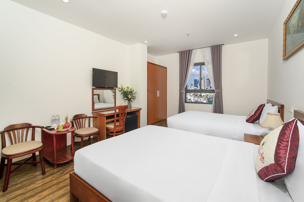 Si decides alojarte en Phu An Hotel, disfrutarás de una fantástica ubicación en el centro de Da Nang, a unos pasos de Han River y a solo 10 min a pie de Puente del Dragón. Además, este hotel se encuentra a 4,1 km de Playa My Khe y a 1,2 km de Catedral de Da Nang. Te sentirás como en tu propia casa en cualquiera de las 53 habitaciones con decoraciones diferentes, equipadas con minibar y televisión LCD. La conexión wifi gratis te mantendrá en contacto con los tuyos. Además, podrás disfrutar de canales por cable. El baño privado con ducha está provisto de cabezal de ducha tipo lluvia y artículos de higiene personal de diseño. Entre las comodidades, se incluyen escritorio y botella de agua gratuita, además de un servicio de limpieza disponible a petición. Las distancias se expresan en números redondos.