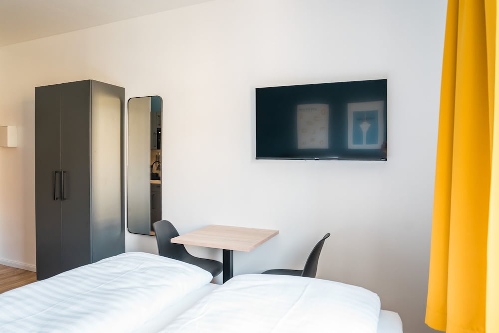Si decides alojarte en Antares Apartments, te encontrarás en una fantástica zona de Düsseldorf (Friedrichstadt) y estarás a menos de cinco minutos en coche de Königsallee y Mercado de Navidad de Düsseldorf. Además, este apartamento se encuentra a 2,8 km de Mitsubishi Electric Halle y a 6,6 km de Messe Düsseldorf. Reserva una de las 49 habitaciones con cocina básica, frigorífico y placa de cocina, y disfruta de una estancia inolvidable. La conexión wifi gratis te permitirá mantenerte al día de todo. Además, en tus ratos libres tendrás una televisión de pantalla plana con canales por cable para entretenerte. Entre las comodidades, se incluyen microondas y cafetera y tetera. Las distancias se expresan en números redondos.