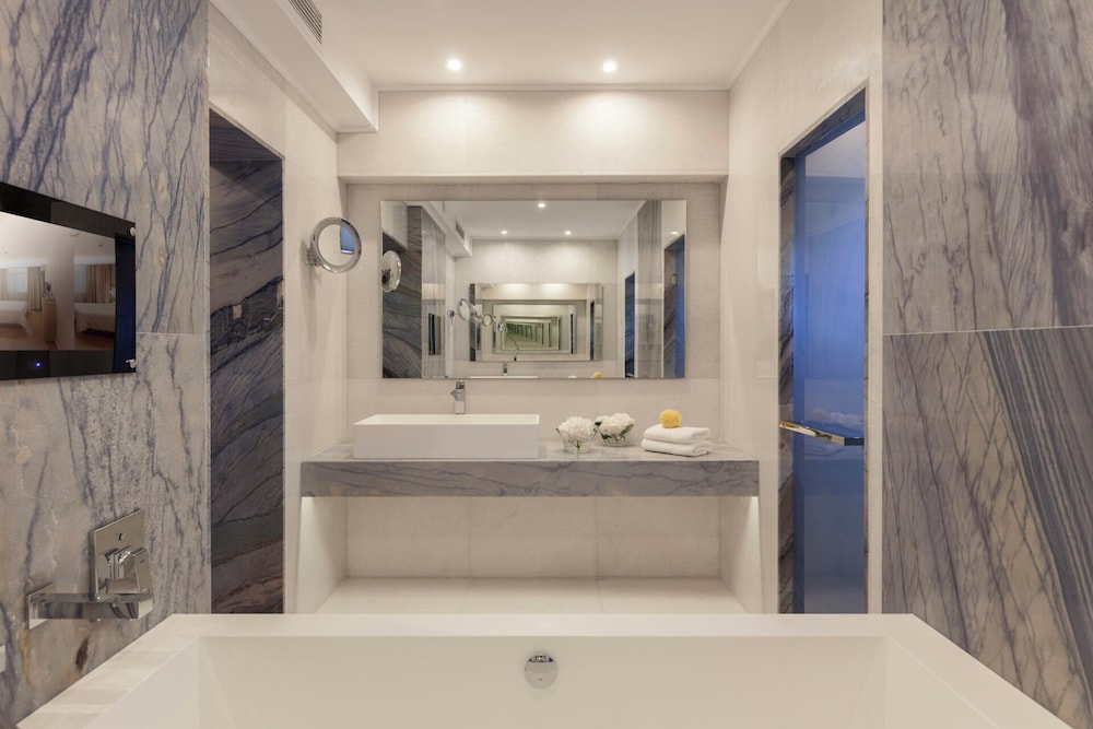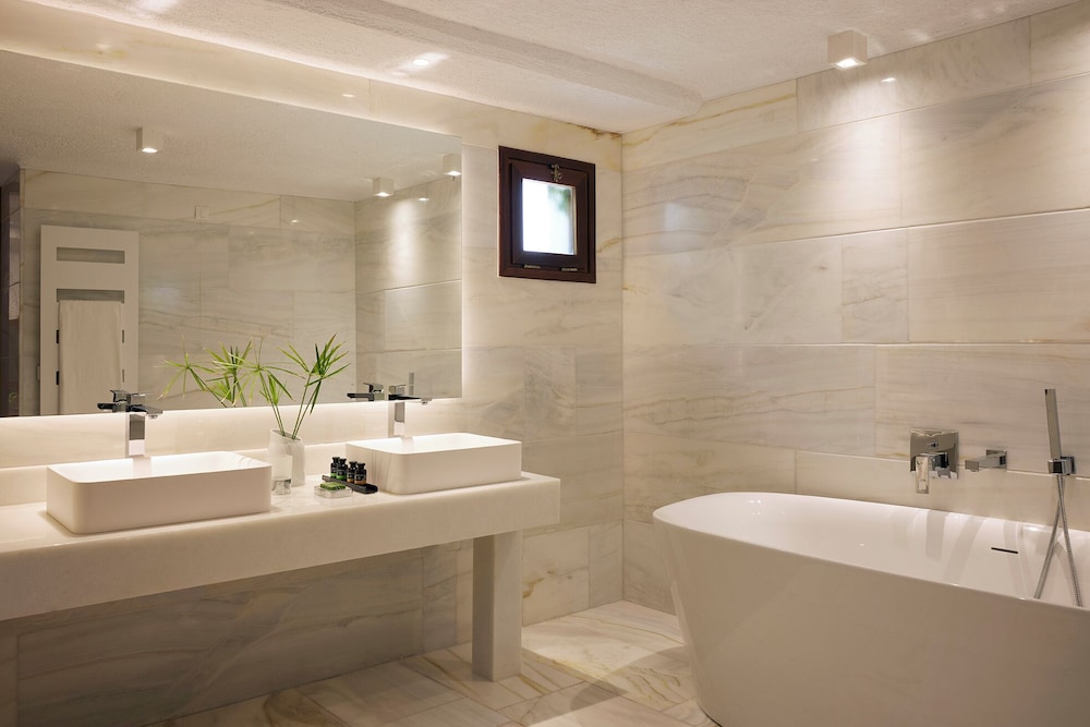 Si decides alojarte en Elounda Mare Relais & Chateaux Hotel de Ágios Nikolaos, estarás cerca de un campo de golf y a menos de cinco minutos ne coche de Alykes de Elounda y Molinos de viento de Elunda. Además, este complejo de playa se encuentra a 2,2 km de Basílica paleocristiana de Poros Elundas y a 2,2 km de Playa Hiona. Disfruta de una estancia fabulosa en una de las 82 habitaciones con muebles diferentes, todas equipadas con bañera de hidromasaje privada cubierta y televisión de pantalla plana. Las habitaciones disponen de balcón o patio con mobiliario. Para los momentos de ocio, tendrás reproductor de DVD, televisión con con canales por satélite y conexión a Internet por cable y wifi gratis. El baño privado con ducha y bañera combinadas está provisto de bañera de hidromasaje y artículos de higiene personal de diseño. Las distancias se expresan en números redondos.
