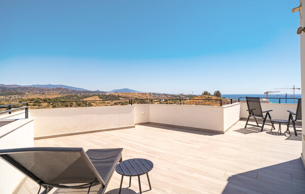This spacious and inviting holiday home in Estepona on the Costa del Sol is the ideal place for a relaxing family holiday. The cheerful interior creates a pleasant balance between cosiness and modern comfort. Start the day in the well-equipped kitchen, where you can prepare breakfast together and then enjoy it in peace on the terrace. The living area has a spacious dining table and a cosy sofa area, which is perfect for movie nights or socialising. Prepare a small snack and take the opportunity to relax by the pool. Here you can splash around with your children and enjoy the sun.
