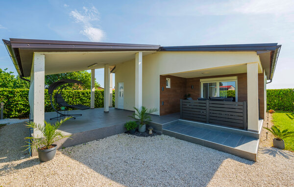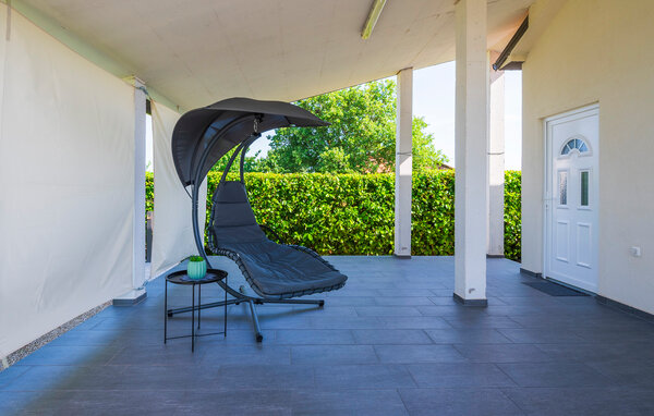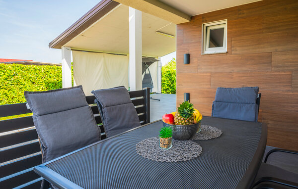 Inside your holiday home in Fazana, you will find an elegant living area with a large sofa, ideal for relaxing with a good film or an exciting holiday read. The open-plan kitchen with practical kitchen counter offers everything you need to spoil your loved ones with culinary delights. Enjoy your breakfast at the bright dining area, while the large glass front lets in plenty of natural light.