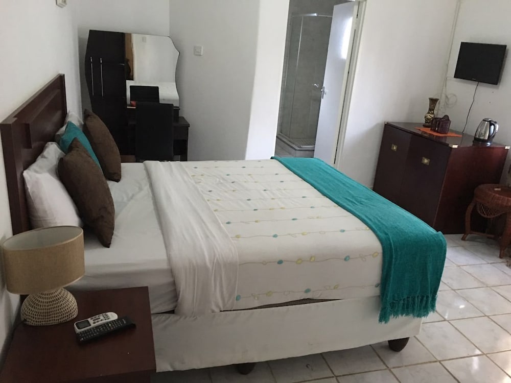 Si decides alojarte en Vintage View Guest House, disfrutarás de una fantástica ubicación en pleno centro de Gaborone, a menos de cinco minutos en coche de Three Dikgosi Monument y Museo Nacional de Botsuana. Además, este bed and breakfast se encuentra a 3 km de Enclave del gobierno de Gaborone y a 3,1 km de Universidad de Botsuana. Te sentirás como en tu propia casa en cualquiera de las 5 habitaciones con aire acondicionado. La conexión wifi gratis te mantendrá en contacto con los tuyos. Además, podrás disfrutar de canales por satélite. El baño privado con bañera y ducha independientes está provisto de bañera profunda y artículos de higiene personal gratuitos. Entre las comodidades, se incluyen escritorio y cafetera y tetera, además de un servicio de limpieza disponible todos los días. Las distancias se expresan en números redondos.