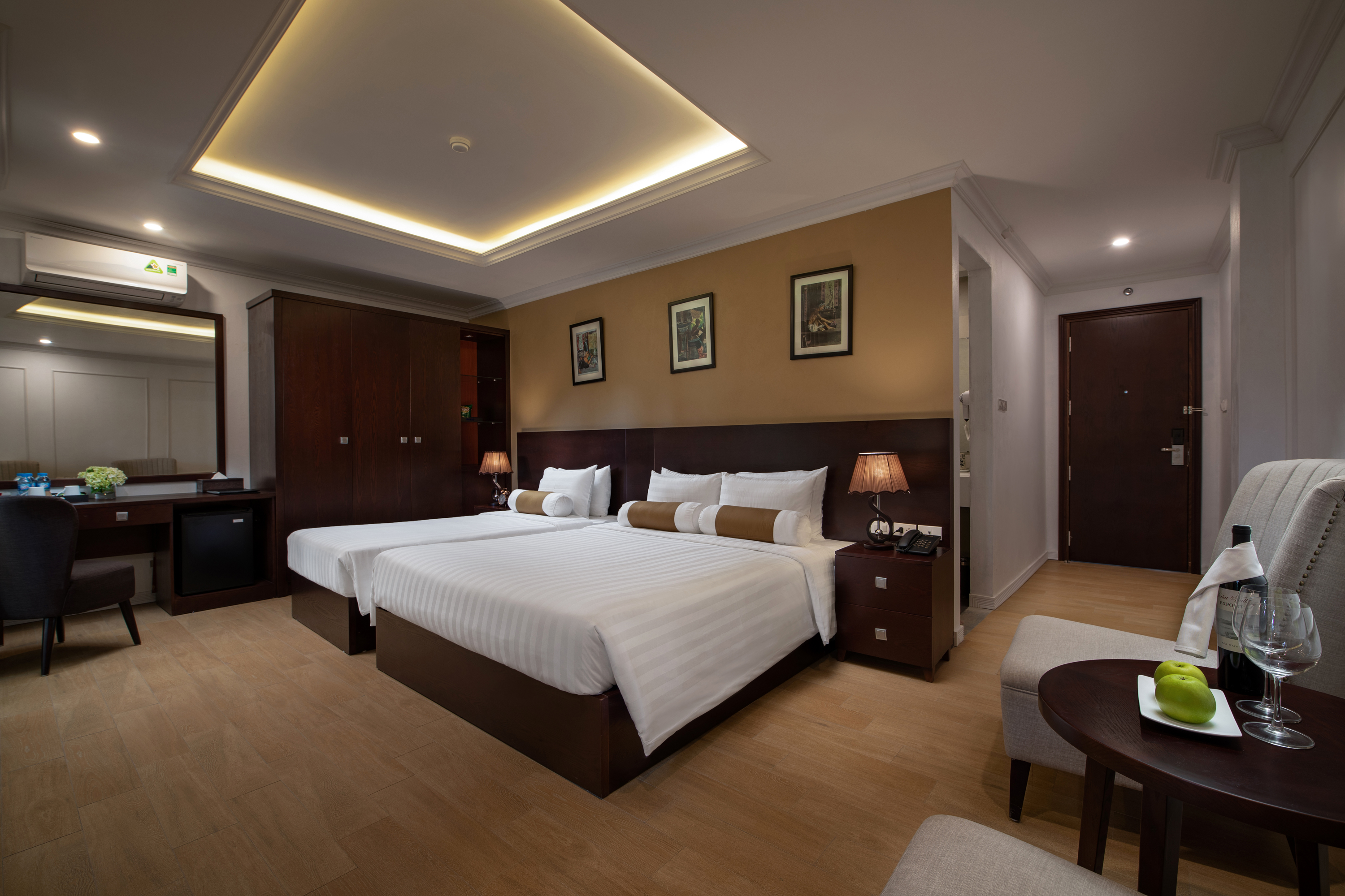 El Hanoian Central Hotel & Spa es un hotel de 4 estrellas completamente nuevo ubicado en el corazón del casco antiguo de Hanoi. Inspirado en la cultura hanoiana, el hotel ofrece una estancia cómoda y práctica en medio del vibrante ambiente de la ciudad. Nuestras suites, elegantemente decoradas, cuentan con comodidades modernas que garantizan un refugio relajante después de un día de exploración. El hotel también se enorgullece de contar con el Bell Pepper Restaurant, que sirve exquisitos platos, y el Vita Spa, que ofrece una atmósfera rejuvenecedora para relajar cuerpo y mente.