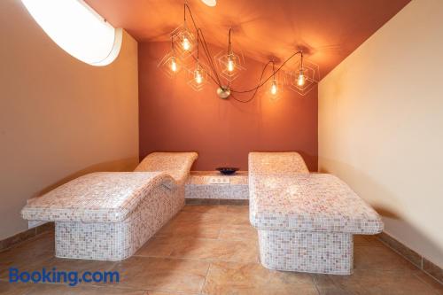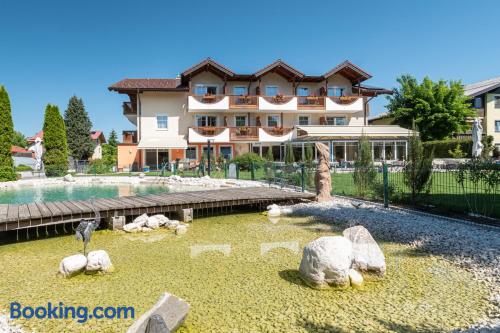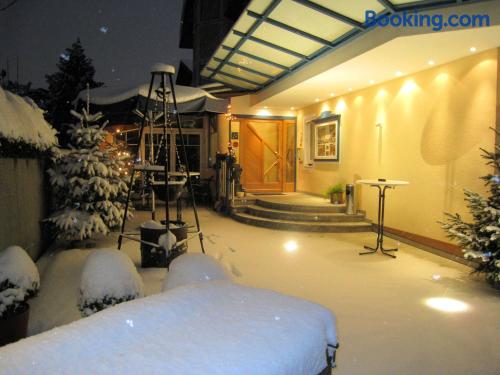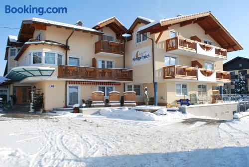 In a quiet location in Wals, 3.1 mi of the historic center of Salzburg, the family-run Hotel Himmelreich features a sauna and a garden with a swimming pool. Bicycles and Wi-Fi access are provided free of charge. Each room has a private bathroom, a mini-bar and most of the rooms feature a balcony. Free private parking is available at the Himmelreich Hotel.