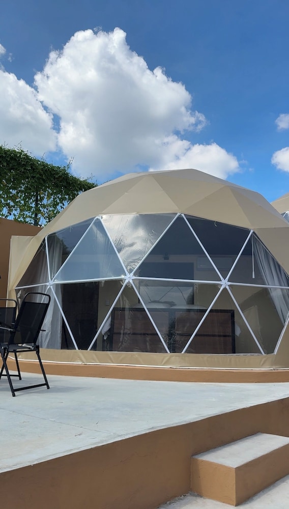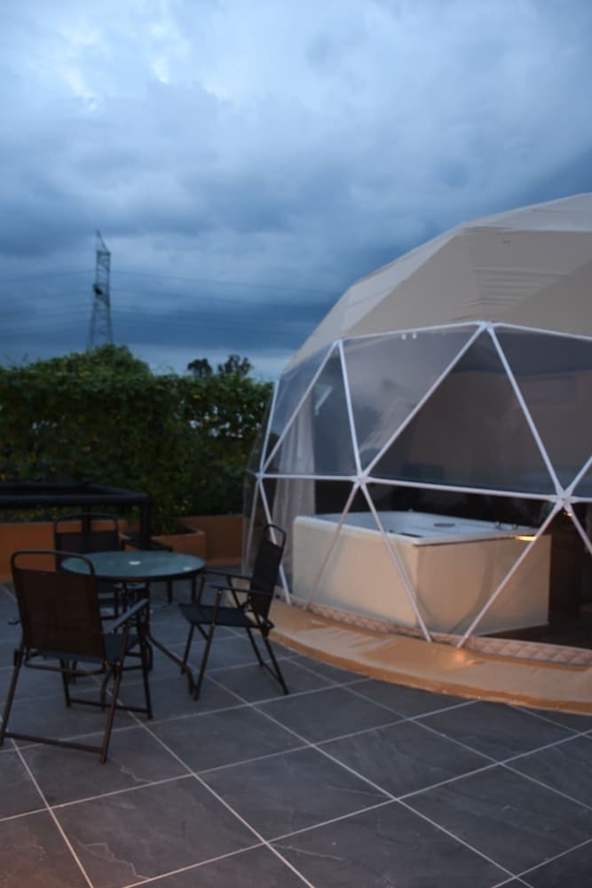 Si decides alojarte en Luahara Glamping Domo Experience Presa de las Tortugas - Huaxtla Zapopan de El Arenal, estarás en las afueras, a 28,2 km de Centro comercial Andares y a 30,2 km de Expo Guadalajara. Además, este hotel se encuentra a 22,8 km de Estadio Akron y a 29,4 km de Consulado de los Estados Unidos en Guadalajara. En una de las 6 habitaciones, equipadas con bañera de hidromasaje privada, te espera una estancia inolvidable. Las distancias se expresan en números redondos.