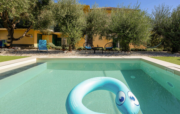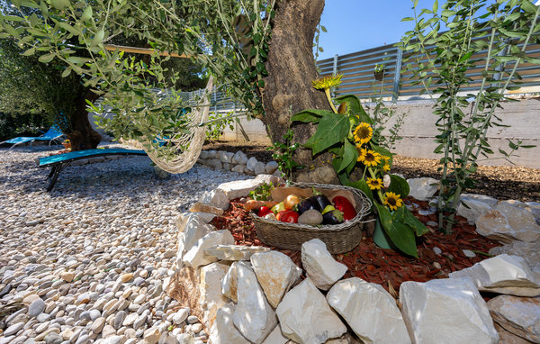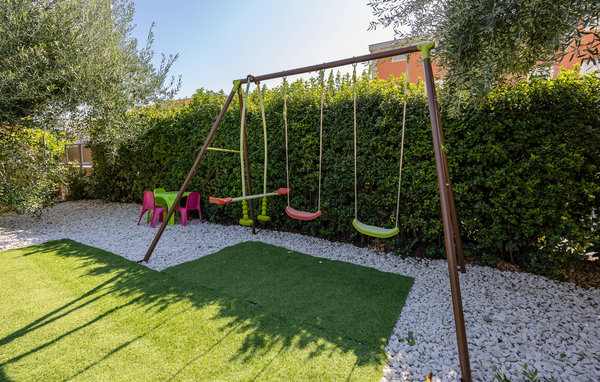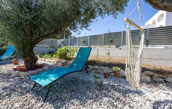 The apartment has a fenced garden where you will find many play facilities. Let the children play badminton or have fun in the sandpit while you relax in the hammock in the shade of the olive trees. The garden table under the vines is the ideal place to round off a wonderful day's holiday.