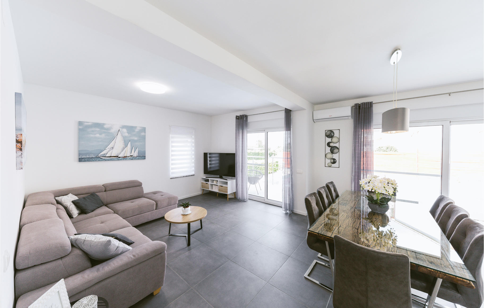 Esta estupenda casa de vacaciones con piscina se encuentra a sólo 3 minutos a pie del hermoso mar cristalino de la bahía de Katelanski, en Katel Kambelovac, cerca de la ciudad de Trogir. Totalmente equipada para unas cómodas vacaciones en familia con amigos, la casa de vacaciones tiene, entre otras cosas, cuatro dormitorios y una gran terraza cerca de la piscina. Aquí podrá disfrutar de numerosos eventos veraniegos y restaurantes que ofrecen a diario delicias mediterráneas frescas y vino de primera calidad, donde podrá familiarizarse con la cocina local, y de hermosos y largos paseos nocturnos por la costa. La luna y las estrellas raramente brillan más y son perfectas para agradables baños nocturnos.- Aparcamiento grat. en el sitio- Piscina medio jun - medio sept- Piscina exterior privada (32m2)- Incl. gastos de consumo- Aire acondicionado h/c- Ropa de cama, toalla (incluido)- Limpieza final (incluido)- Cama de bebe: 1- Silla de bebe: 1Esta estupenda casa de vacaciones con piscina se encuentra a sólo 3 minutos a pie del hermoso mar cristalino de la bahía de Katelanski, en Katel Kambelovac, cerca de la ciudad de Trogir.