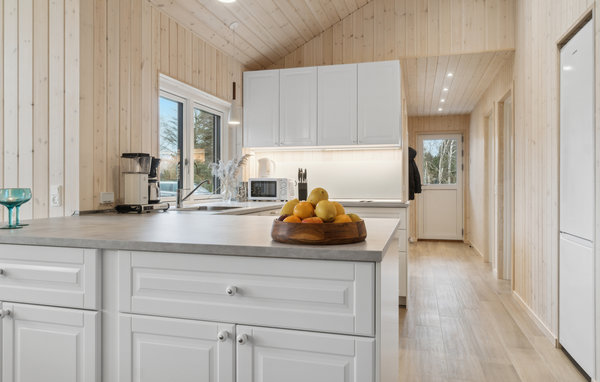 Welcome to this inviting house, which is within walking distance of the beach. Relax here in bright rooms with attractive furnishings. Wake up to a beautiful view of the outdoors and enjoy the view through the large windows at mealtimes. Look forward to cosy evenings when you return from your adventures and chat on the sofa for a long time or relax in the sauna and create a particularly cosy atmosphere with a fire in the wood-burning stove.
