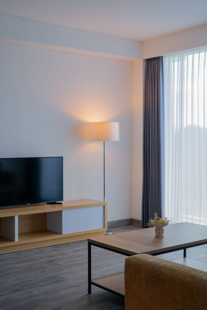 Tendrás tintorería, un servicio de recepción las 24 horas y atención multilingüe a tu disposición. Este hotel pone a tu disposición 3 salas de reuniones donde celebrar todo tipo de eventos. Pagando un pequeño suplemento podrás aprovechar prestaciones como servicio de transporte al aeropuerto (ida y vuelta) previa petición y aparcamiento sin asistencia gratuito. Para un relax sin igual, nada como una visita al spa, que ofrece masajes. La diversión está asegurada en este alojamiento, que ofrece 2 piscinas al aire libre y un gimnasio. Encontrarás además conexión a Internet wifi gratis, servicios de conserjería y servicio de cuidado infantil (de pago). Puedes tomar una deliciosa comida en el restaurante The Kitchen de este hotel o aprovechar el servicio de habitaciones que ofrece las 24 horas. Relájate con un refresco del bar junto a la piscina o de uno de los 2 bares con salón. Se ofrece un desayuno bufé todos los días de 07:00 a 10:00 con un coste adicional. De acuerdo con la legislación local, todos los visitantes deben permanecer en el alojamiento durante el Día del Silencio (Nyepi) o Año Nuevo hindú durante un periodo de 24 horas a partir de las 06:00. El Día del Silencio suele ser en marzo o en abril (las fechas cambian cada año). No es posible realizar la entrada ni la salida del alojamiento en dicho día. El aeropuerto de Ngurah Rai (Aeropuerto Internacional de Bali) también permanece cerrado el Día del Silencio.- Desayuno tipo bufé: 140000 IDR por adulto y 70000 IDR por menor (precio aproximado)