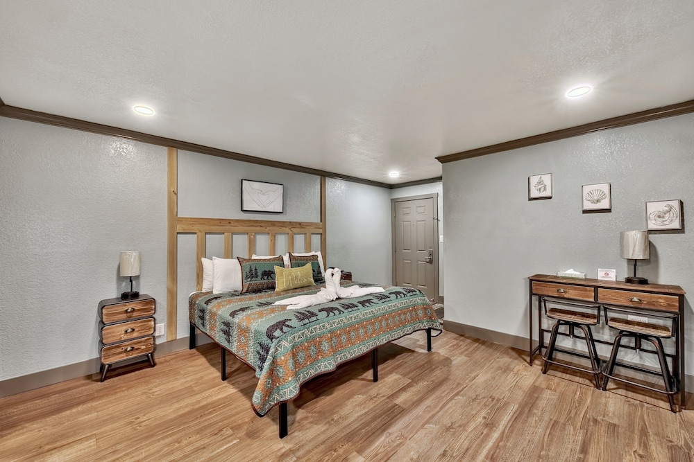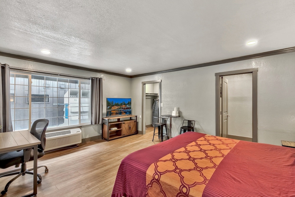 Si decides alojarte en Blue Jay Lodge, te encontrarás en una fantástica zona de Lago Tahoe sur (Lakeside Park) y estarás a menos de 2 min en coche de Casino de Harrah's Lake Tahoe y a 5 de Heavenly Ski Resort. Además, este hotel de playa se encuentra a 0,5 km de Casino de Harveys Lake Tahoe y a 0,6 km de Heavenly Gondola. En las 64 habitaciones climatizadas, equipadas con bañera de hidromasaje privada cubierta, te espera una estancia inolvidable. Las camas cuentan con colchones con una capa de acolchado adicional para descansar plácidamente. Mantén el contacto con los tuyos gracias a la la conexión wifi gratis. Entre las comodidades, se incluyen frigorífico y cafetera y tetera, además de un servicio de limpieza disponible todos los días. Las distancias se expresan en números redondos.