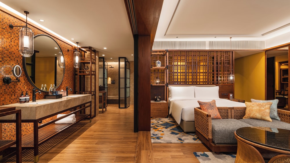 Hotel Indigo Bintan Lagoi Beach by IHG de Bintan se encuentra a pie de playa, a apenas 3 min a pie de Lago de la bahía de Lagoi y a solo 11 min de Plaza Lagoi. Además, este hotel de playa se encuentra a 1 km de Playa de la bahía de Lagoi y a 7,9 km de Terminal de Ferry Bandar Bentan Telani. Te sentirás como en tu propia casa en cualquiera de las 120 habitaciones con muebles diferentes, equipadas con minibar y televisión LED. Las camas cuentan con colchones con una capa de acolchado adicional y ropa de cama de alta calidad para descansar plácidamente. Las habitaciones disponen de balcón. La conexión wifi gratis te mantendrá en contacto con los tuyos. Además, podrás disfrutar de canales por cable. El cuarto de baño está provisto de secadores de pelo y albornoces. Las distancias se expresan en números redondos.