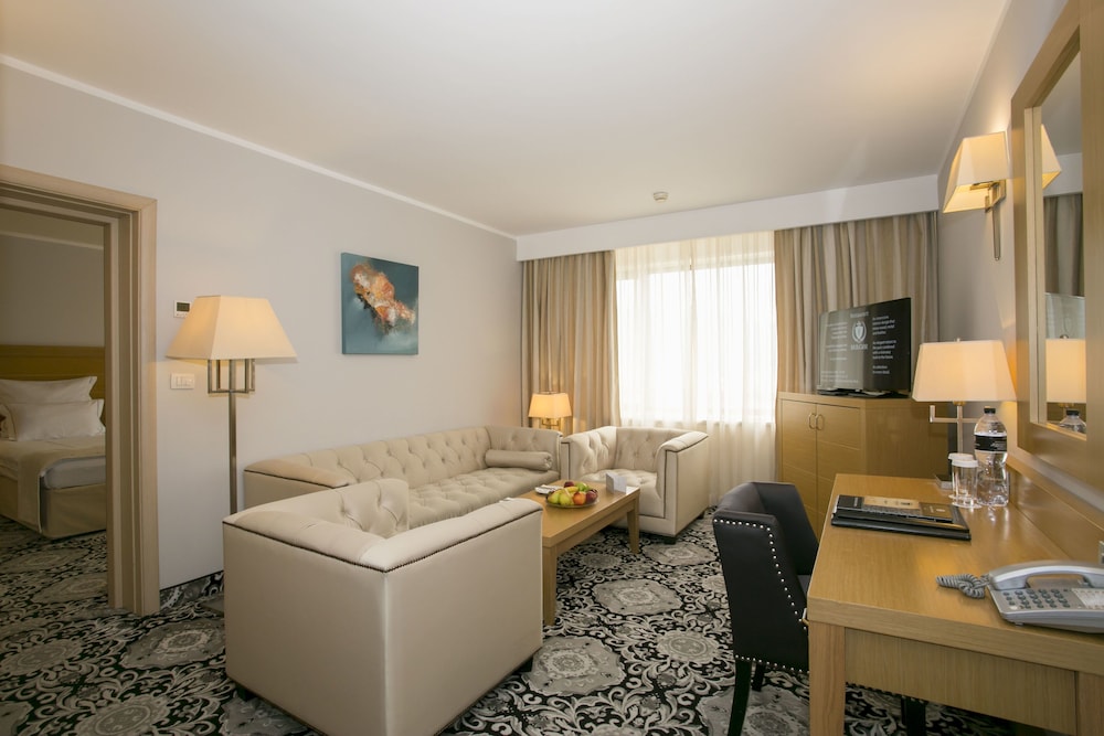 Si decides alojarte en Hotel Marinela Sofia, disfrutarás de una magnífica ubicación en pleno centro de Sofía, a menos de 15 minutos a pie de Park Center y East Park Trade Centre (centro comercial). Además, este hotel de lujo se encuentra a 0,8 km de Parque Yuzhen y a 1,4 km de Bulevar Vitoshka. Te sentirás como en tu propia casa en cualquiera de las 258 habitaciones con minibar y televisión LCD. La conexión wifi gratis te mantendrá en contacto con los tuyos. Además, podrás disfrutar de canales por satélite. El baño privado con bañera o ducha está provisto de artículos de higiene personal gratuitos y secadores de pelo. Entre las comodidades, se incluyen caja fuerte y escritorio, además de un servicio de limpieza disponible todos los días. Las distancias se expresan en números redondos.