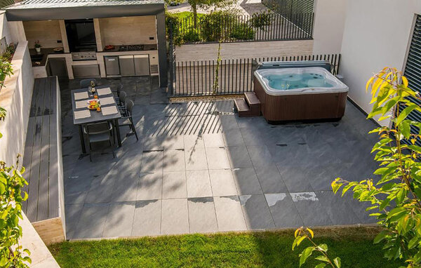 Outside, an idyllic atmosphere awaits you with a spacious pool and an inviting conservatory. Here you will also find a whirlpool for five people, ideal for ending the evening in the open air. Take advantage of the first-class location close to the beach and restaurants to enjoy the Mediterranean flair.