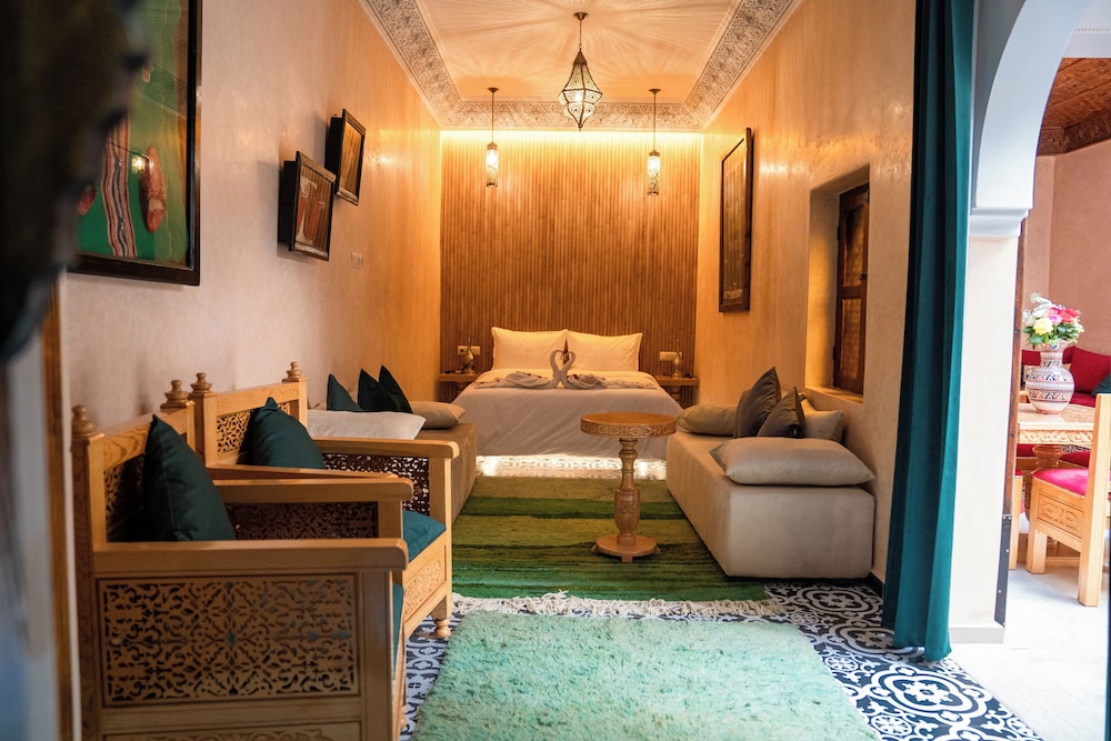 Si decides alojarte en Click Riad & Spa, disfrutarás de una fantástica ubicación en el centro de Marrakech, a solo 2 min en coche de Palacio de la Bahía y a 6 de Plaza de Yamaa el Fna. Además, esta casa de huéspedes spa se encuentra a 5,6 km de Jardín Majorelle y a 5,4 km de Plaza de Marrakech. Te sentirás como en tu propia casa en cualquiera de las 5 habitaciones con aire acondicionado. Mantén el contacto con los tuyos gracias a la la conexión wifi gratis. El baño privado con ducha está provisto de secadores de pelo y albornoces. Entre las comodidades, se incluyen caja fuerte y botella de agua gratuita, además de un servicio de limpieza disponible todos los días. Las distancias se expresan en números redondos.