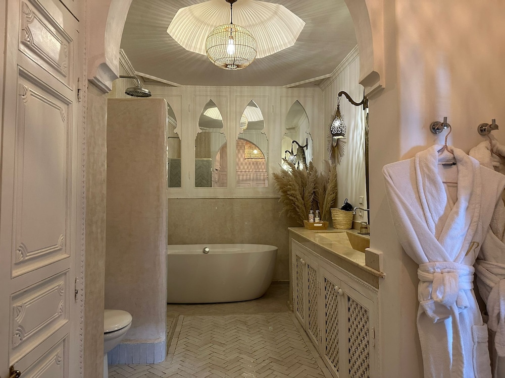 Tendrás check-out exprés, tintorería y un servicio de recepción las 24 horas a tu disposición. Relájate en el spa completo, que ofrece masajes, tratamientos corporales y tratamientos faciales. Si quieres divertirte, aquí tienes una piscina al aire libre y baño turco, entre muchas otras instalaciones. Otros servicios de este riad marroquí incluyen conexión a Internet wifi gratis, servicios de conserjería y una tienda de recuerdos. El servicio de transporte (de pago) te llevará a varios puntos imprescindibles de la zona. Descubre las delicias que te esperan en el restaurante junto a la piscina de este riad marroquí, con vistas al jardín y mesas para comer al aire libre (cuando el tiempo lo permite). Si lo prefieres, puedes aprovechar el servicio de habitaciones las 24 horas. Disfruta de un detalle de bienvenida gratuito organizado por la recepción todos los días, donde podrás conocer a otros huéspedes mientras tomas un bocado. Qué mejor forma de acabar el día que con una bebida en el bar o lounge. Se ofrece un desayuno completo gratuito todos los días de 08:00 a 11:00.Los siguientes cargos se pagan en el alojamiento (es posible que las tasas incluyan los impuestos aplicables):