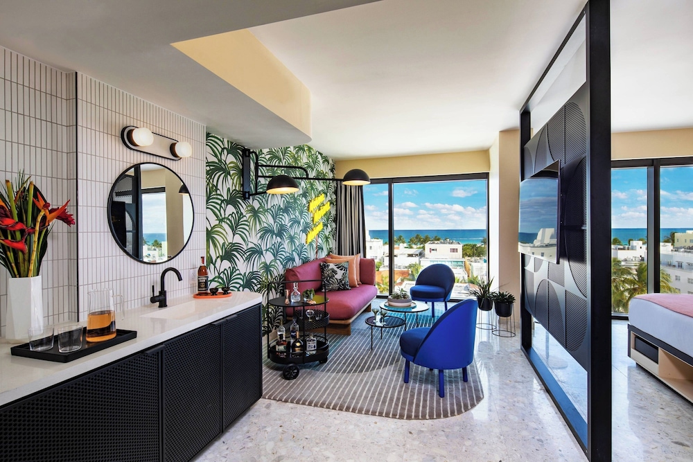 Si decides alojarte en Moxy Miami South Beach, te encontrarás en una fantástica zona de Miami Beach (Barrio de South Beach), a solo unos pasos de Zona comercial de Collins Avenue y Distrito histórico de Art Decó. Además, este hotel se encuentra a 0,3 km de Ocean Drive y a 1,7 km de Miami Beach Convention Center. Te sentirás como en tu propia casa en cualquiera de las 202 habitaciones con aire acondicionado y Smart TV. Las camas cuentan con colchones con una capa de acolchado adicional y ropa de cama de alta calidad para descansar plácidamente. La conexión a wifi de pago te mantendrá en contacto con los tuyos. Además, podrás disfrutar de canales digitales. El baño privado con ducha está provisto de cabezal de ducha tipo lluvia y secadores de pelo. Las distancias se expresan en números redondos.