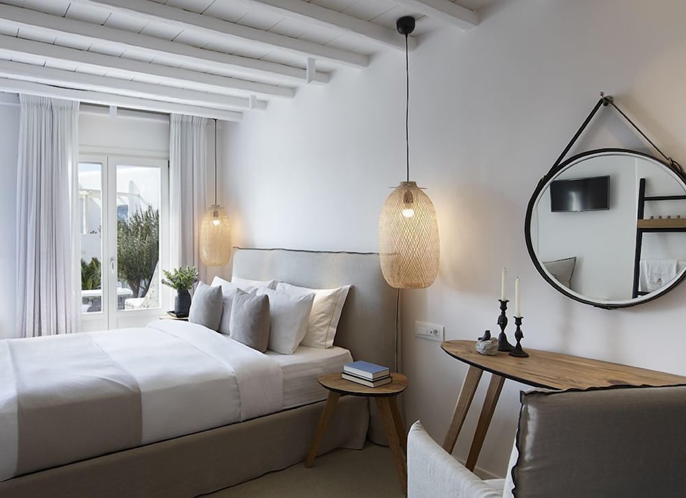 Si decides alojarte en Vencia Boutique Hotel de Míkonos, estarás cerca de la playa y a menos de 15 minutos a pie de Molinos de Míkonos y Puerto antiguo de Mikonos. Además, este hotel spa se encuentra a 3,4 km de Puerto nuevo de Mikonos y a 3,9 km de Playa de Ornos. Disfruta de una agradable estancia en una de las 34 habitaciones con televisión de pantalla plana. La conexión wifi gratis te mantendrá en contacto con los tuyos. Además, podrás disfrutar de canales por satélite. El cuarto de baño está provisto de ducha, cabezal de ducha tipo lluvia y artículos de higiene personal gratuitos. Entre las comodidades, se incluyen caja fuerte, botella de agua gratuita y teléfono. Las distancias se expresan en números redondos.