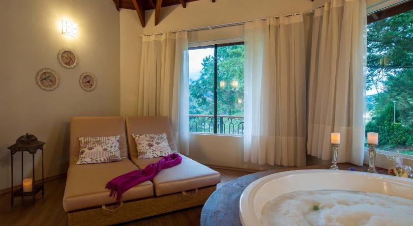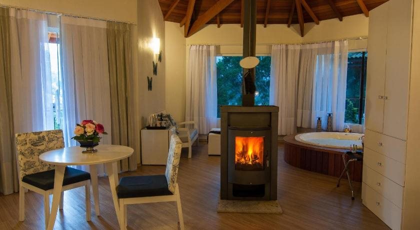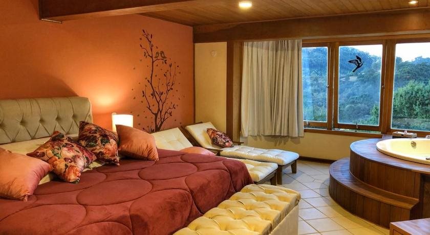 Peacefully located, the Pousada Caricia is surrounded by the forests of scenic Monte Verde. If offers spacious suites with fireplaces, a wellness spa and an outdoor pool with a lounge.Rooms at the Caricia do Vento have lodge style interiors with queen size beds. All are equipped with an LCD TV and DVD player, an additional sofa bed and free Wi-Fi.Guests at the Pousada Pousada Caricia can enjoy a daily breakfast buffet with fresh juices, cakes and cold cuts. The hotel also features an onsite restaurant and bar.The hotel is conveniently located only 600 metres from the centre of Monte Verde, which offers several additional dining and leisure options. Free private parking is provided.