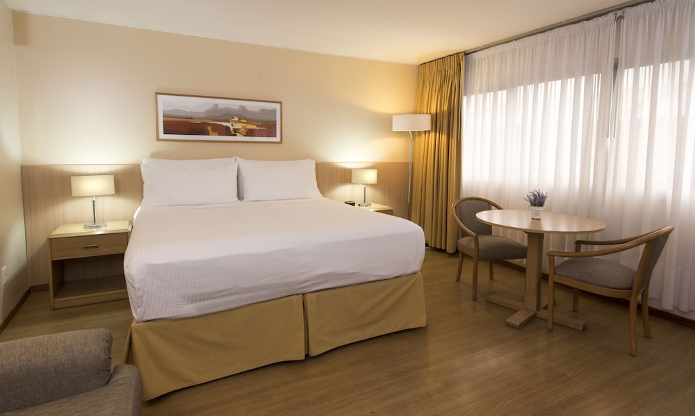 Tendrás un centro de negocios, tintorería y un servicio de recepción las 24 horas a tu disposición. ¿Estás organizando un evento en Montevideo? En este hotel tienes a tu disposición 587 metros cuadrados de espacio con zona para conferencias y salas de reuniones. Aprovecha las instalaciones recreativas, que incluyen una piscina cubierta y gimnasio. Cuando te apetezca almorzar o cenar solo tendrás que ir a El Quijote, el restaurante de este hotel, o incluso simplemente llamar al servicio de habitaciones con horario limitado. Qué mejor forma de acabar el día que con una bebida en el bar o lounge. Se ofrece un desayuno bufé todos los días de 06:30 a 10:00 con un coste adicional.Los siguientes cargos se pagan en el alojamiento (es posible que las tasas incluyan los impuestos aplicables):