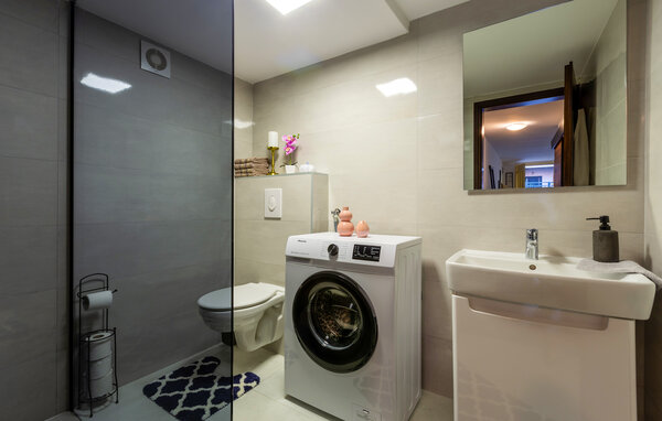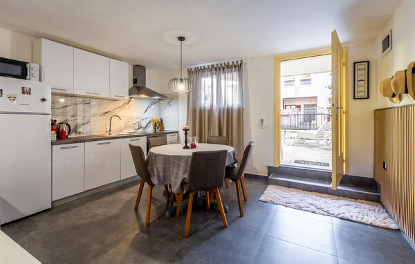 The bright and open-plan living area of your holiday apartment in Novigrad invites you to relax. Make yourself comfortable on the cosy sofa, enjoy your favourite series or read a good book. The homely atmosphere of your cosily decorated apartment creates a carefree holiday mood. Start the day with a delicious breakfast at the round table in the kitchen-diner and plan your excursions in the surrounding area. After an eventful day, the small terrace is the ideal place to round off the evening with a glass of wine.