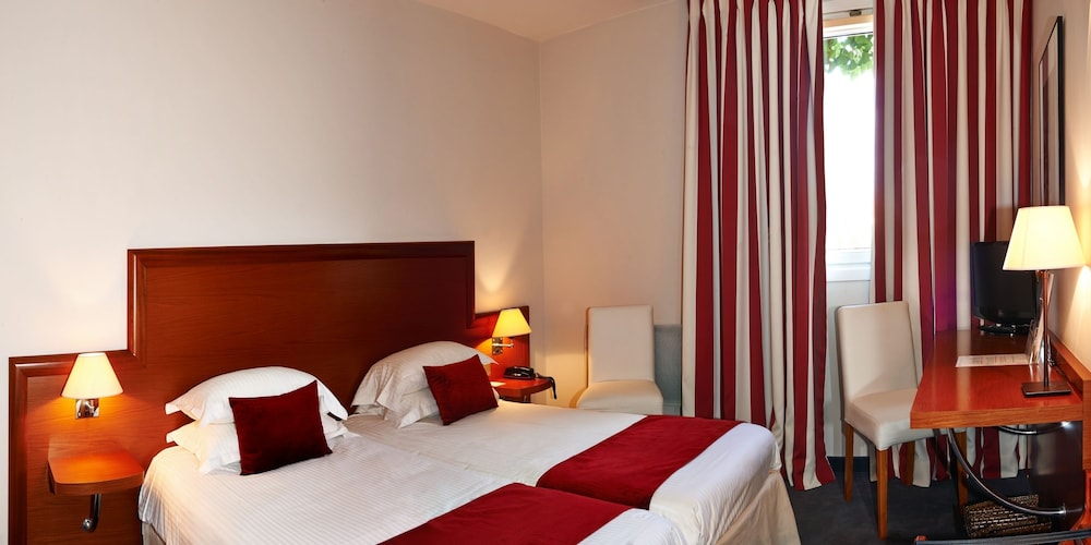 Tendrás tintorería, atención multilingüe y una caja fuerte en recepción a tu disposición. Las instalaciones para eventos de este hotel incluyen zona para conferencias y una sala de reuniones. Hay un aparcamiento sin asistencia gratuito disponible. Con piscina al aire libre de temporada y muchas otras instalaciones recreativas a tu disposición, no te quedará ni un minuto libre. Tienes también una terraza y jardín donde sentarte a contemplar el paisaje. Encontrarás también conexión a Internet wifi gratis, servicios de conserjería y un salón de eventos. Relájate con un refresco del bar junto a la piscina o de uno de los 2 bares con salón. El desayuno bufé, con un coste adicional, se ofrece de lunes a viernes de 07:00 a 10:00, mientras que los fines de semana el horario es de 08:00 a 10:00. La clasificación oficial por estrellas de este alojamiento ha sido otorgada por ATOUT France, la agencia de desarrollo turístico de Francia.Los siguientes cargos se pagan en el alojamiento (es posible que las tasas incluyan los impuestos aplicables):