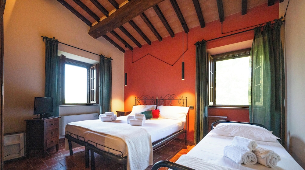 Agriturismo Castel d'Alfiolo-Barcomonte de Gubbio está en la montaña, a solo 10 minutos en coche de Funicular Colle Eletto y Teatro Romano de Gubbio. Además, este alojamiento agroturístico se encuentra a 5,2 km de Palacio del Cónsul y a 5,6 km de Catedral de Gubbio. Te sentirás como en tu propia casa en cualquiera de las 5 habitaciones con frigorífico y minibar. Con la televisión de pantalla plana y la conexión wifi gratis, tendrás para elegir a la hora de entretenerte. El cuarto de baño está provisto de bañera o ducha y secadores de pelo. Entre las comodidades, se incluyen botella de agua gratuita, además de un servicio de limpieza disponible cada semana y la posibilidad de solicitar cunas gratuitas. Las distancias se expresan en números redondos.