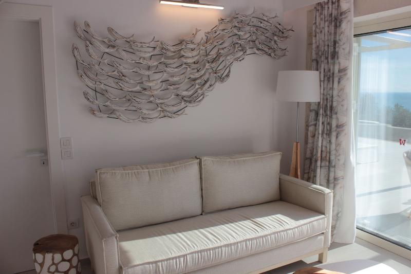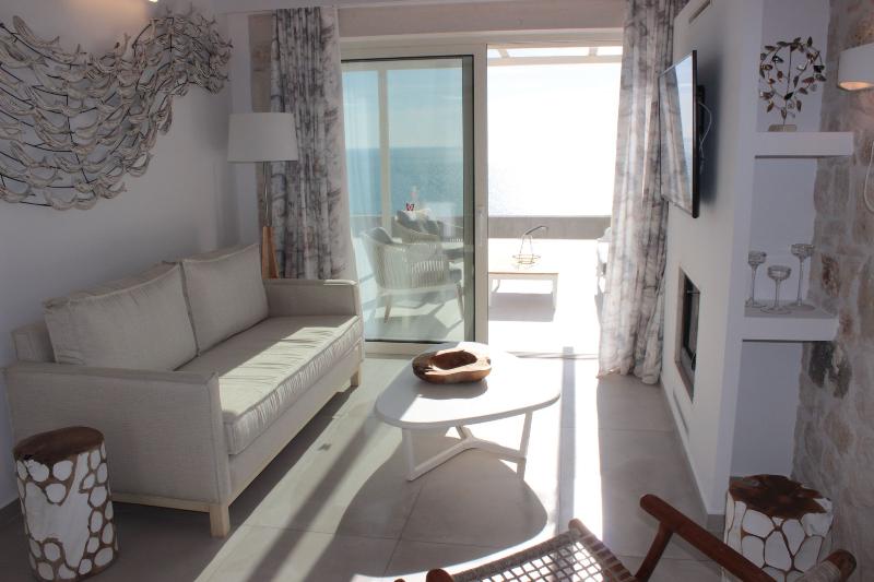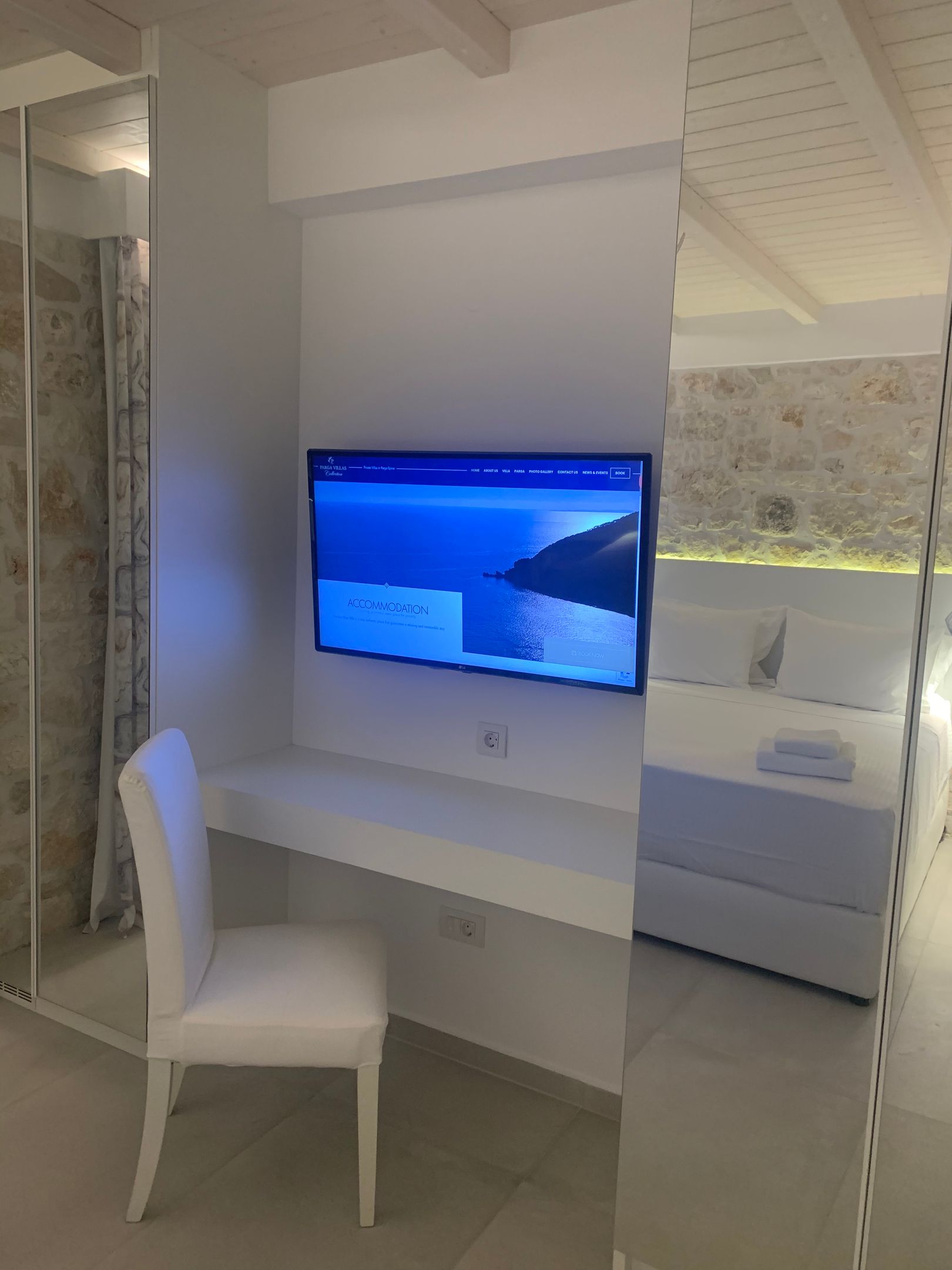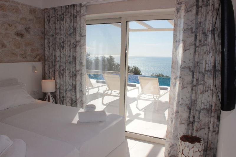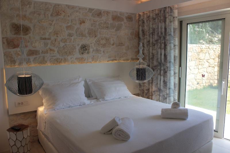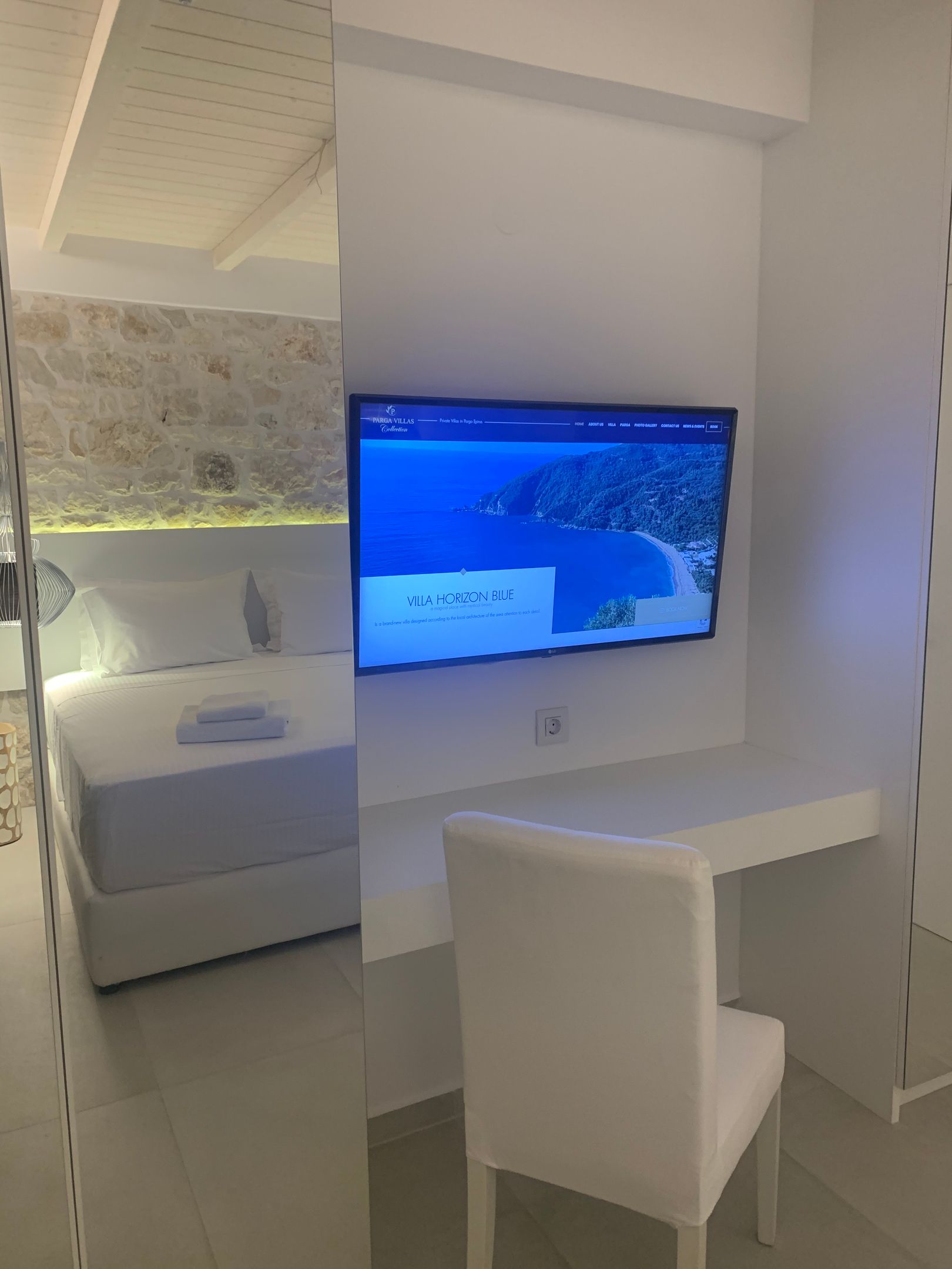 Horizon Blue Is a brand new Luxury villa designed according to the local architecture of the area, with attention to each detail. The use of the traditional stones of the same area and some of the best materials makes this villa unique. The stone walls contrast with the blue of the sea and the sky. The outdoor spaces overlook the Ionian sea and Lichnos bay are suitable for gatherings under Parga's sky. Private yard with barbecue and dining area to enjoy. A large infinity swimming pool with incredible panoramic breathtaking views will captivate you on the premises. The Horizon Blue Villa is located just 10 minutes drive from the centre of beautiful historic Parga town, a magical place with mystical beauty.