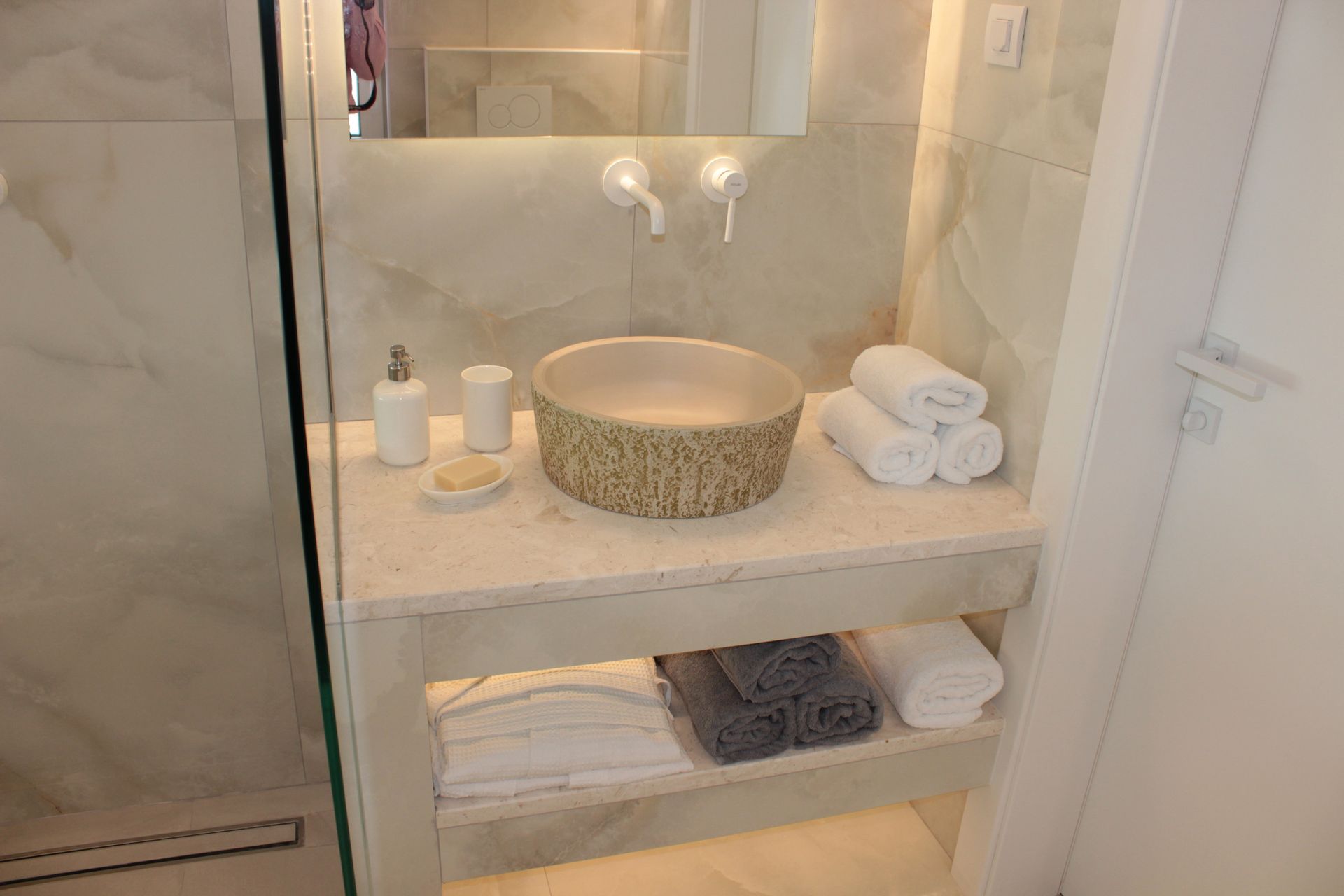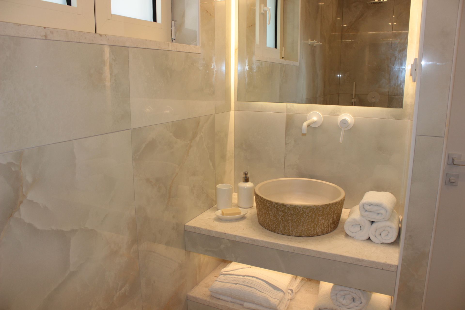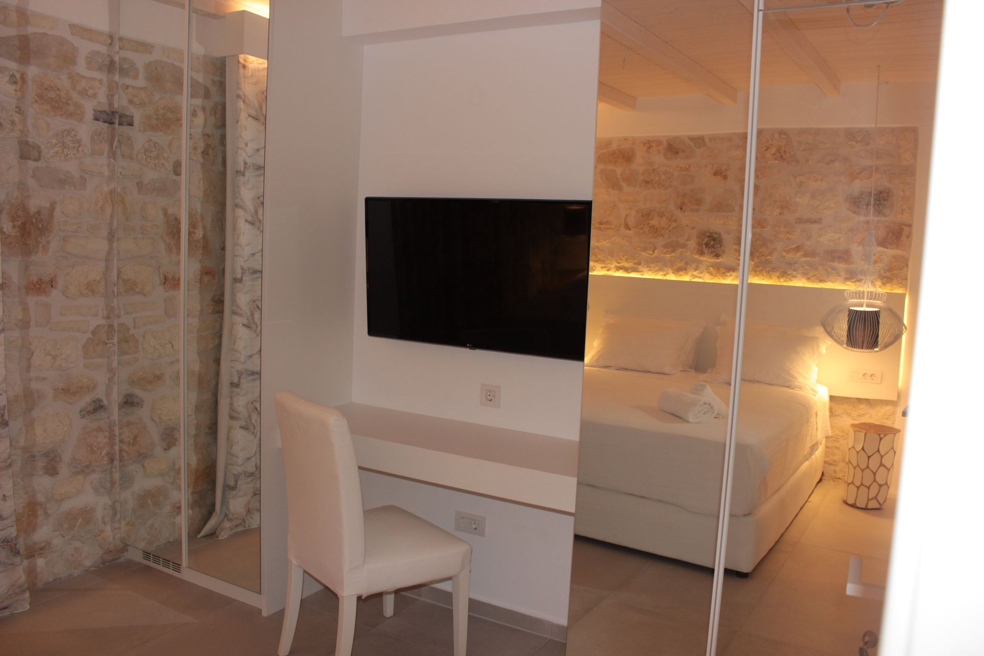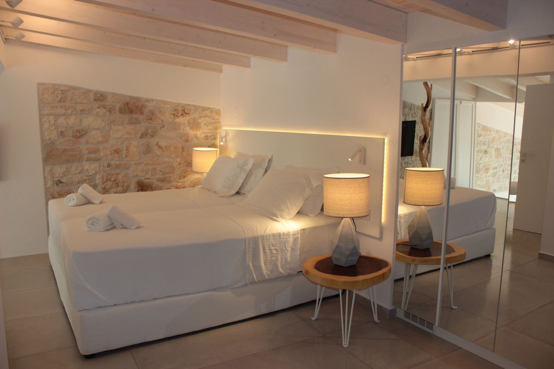 Horizon Blue Is a brand new Luxury villa designed according to the local architecture of the area, with attention to each detail. The use of the traditional stones of the same area and some of the best materials makes this villa unique. The stone walls contrast with the blue of the sea and the sky. The outdoor spaces overlook the Ionian sea and Lichnos bay are suitable for gatherings under Parga's sky. Private yard with barbecue and dining area to enjoy. A large infinity swimming pool with incredible panoramic breathtaking views will captivate you on the premises. The Horizon Blue Villa is located just 10 minutes drive from the centre of beautiful historic Parga town, a magical place with mystical beauty.
