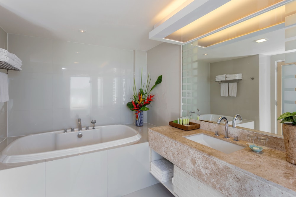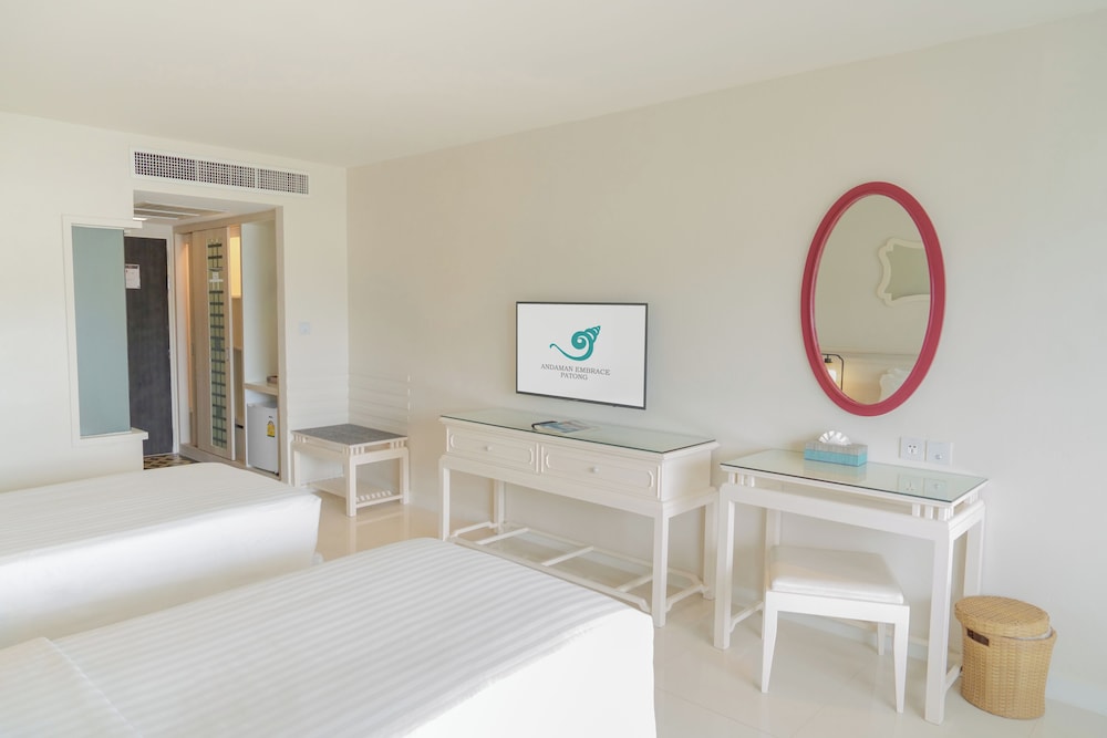 Si decides alojarte en Andaman Embrace Patong, disfrutarás de una magnífica ubicación en pleno centro de Patong, a solo 15 minutos a pie de Playa Patong y Centro comercial Jungceylon. Además, este hotel para familias se encuentra a 1 km de Calle comercial Bangla Road y a 6,8 km de Playa Karon. Te sentirás como en tu propia casa en cualquiera de las 297 habitaciones con aire acondicionado, frigorífico y televisión LCD. La conexión wifi gratis te mantendrá en contacto con los tuyos. Además, podrás disfrutar de canales por satélite. El baño privado con ducha está provisto de artículos de higiene personal gratuitos y secadores de pelo. Entre las comodidades, se incluyen caja fuerte, botella de agua gratuita y teléfono. Las distancias se expresan en números redondos.