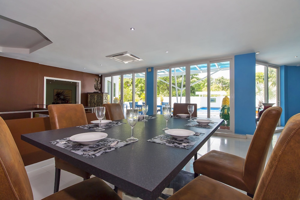 Si decides alojarte en esta villa, te encontrarás en una fantástica zona de Pattaya (Pattaya sur) y estarás a menos de cinco minutos en coche de Walking Street y Carretera Pattaya Beach Road. Además, esta villa se encuentra a 2,8 km de Playa de Pattaya y a 3,3 km de Playa de Jomtien. Regálate una estancia fantástica en esta villa donde, además de aire acondicionado, tendrás una piscina privada y un televisión LCD. Y, si te apetece tomar el aire, puedes salir a su patio, excelentemente amueblado, que es de uso privado. Por su parte, la cocina cuenta con frigorífico grande, horno y con placa de cocina. Entre los servicios de ocio, tendrás una televisión de pantalla plana con multitud de canales por cable. Además, la conexión wifi gratis te permitirá mantenerte al día de todo. Las distancias se expresan en números redondos.